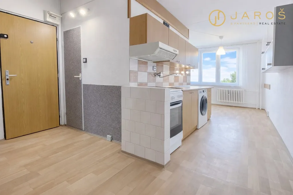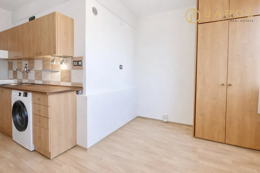 Vybavení bytu zahrnuje následující: kuchyňská linka s plynovým sporákem a elektrickou troubou, dále pračka. Vestavěná skříň v předsíni. Skříň v pokoji. Žaluzie.