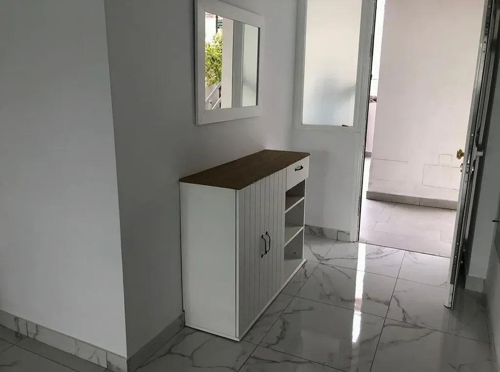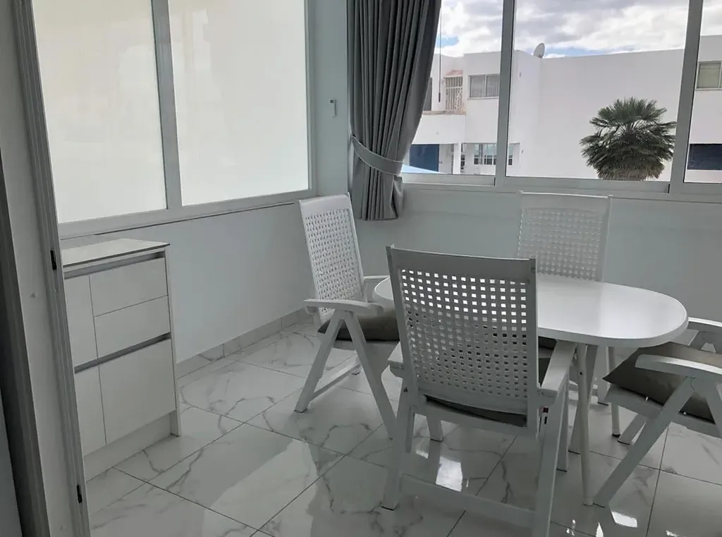 K prodeji nabízíme elegantní apartmán o velikosti 90 m², situovaný v jedné z nejvyhledávanějších lokalit jižního Tenerife – v blízkosti prestižní Golden Mile, jen pár kroků od oceánu, pláže, restaurací a promenády v komplexu Azahara. Apartmán se nachází v udržovaném rezidenčním komplexu z roku 1982 a nabízí světlý, vzdušný interiér s promyšlenou dispozicí. Při vstupu vás přivítá vstupní hala vedoucí do otevřeného obytného prostoru, který propojuje obývací pokoj, jídelnu a moderní kuchyň vybavenou kvalitními spotřebiči. Nemovitost disponuje dvěma ložnicemi – hlavní ložnice je prostorná, plná denního světla a má vlastní koupelnu (en suite), druhá ložnice je rovněž světlá a orientovaná do klidné části komplexu. K dispozici je také druhá koupelna a samostatná toaleta pro hosty. Velkou předností je prostorná krytá terasa se zasklením, která nabízí ideální místo pro relaxaci po celý rok. Terasa je vybavena automatickými markýzami, které zajišťují maximální komfort, stín i soukromí. Rezidenční komplex nabízí moderní výtahy, komunitní bazén se sluneční terasou a udržované zahrady. Díky své poloze v blízkosti Golden Mile máte na dosah vše – pláže, restaurace, nákupní centra i kompletní občanskou vybavenost. Tato nemovitost je ideální jako trvalé bydlení i druhý domov u oceánu v jedné z nejžádanějších částí Tenerife.