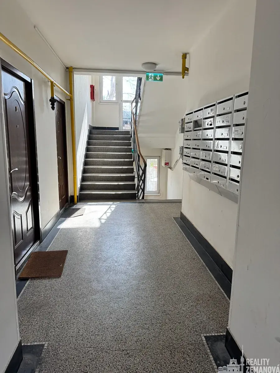 Byt nabízí komfortní a praktické uspořádání. Obývací část s kuchyňským koutem je vybavena novou moderní bílou kuchyňskou linkou se sklokeramickou varnou deskou, elektrickou troubou a myčkou nádobí. V celém bytě jsou položeny nové jednotné vinylové podlahy. Koupelna je zcela nová, vybavená sprchovým koutem, toaleta je samostatná. Ložnice je orientována do klidného, zatravněného vnitrobloku, který poskytuje příjemné a tiché prostředí pro odpočinek.