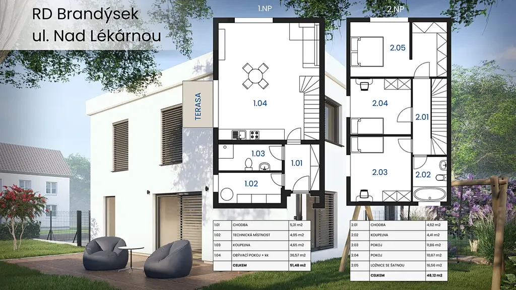 Nabízíme k prodeji moderní rodinný dům o dispozici 4+kk a užitné ploše cca 100 m², situovaný v klidné části obce Brandýsek. K domu náleží rovinatá zahrada o výměře 410 m² a dvě vlastní parkovací stání přímo před domem.
