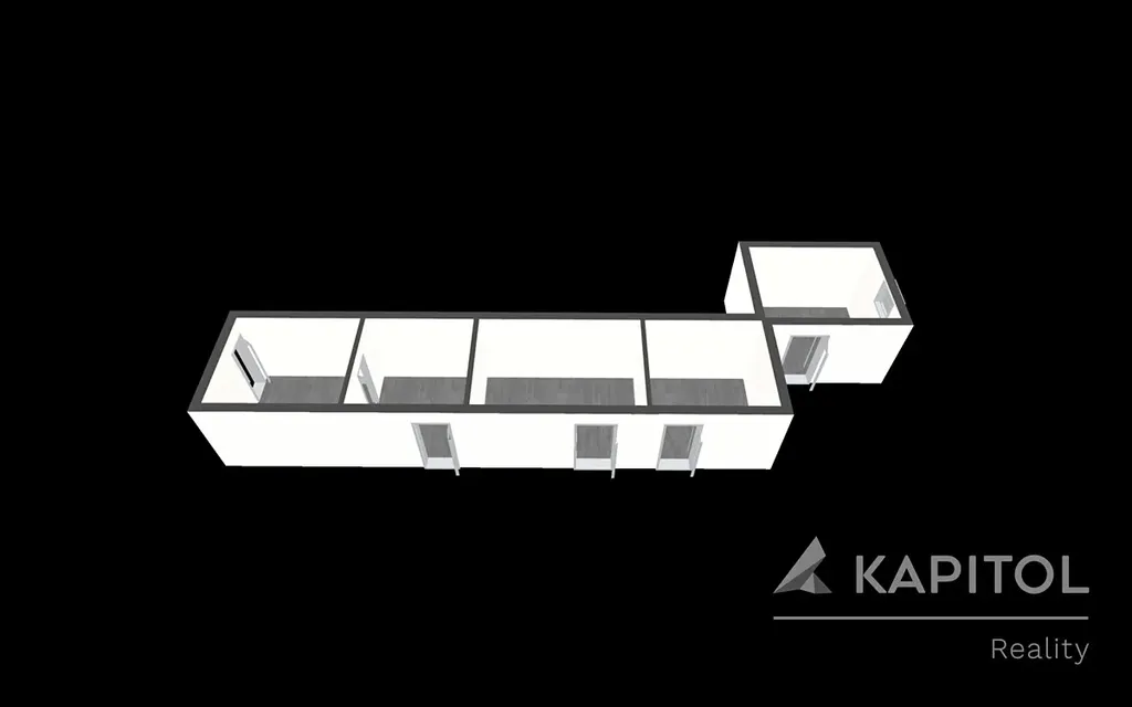 V přízemí se nachází 2 pokoje, kuchyně, koupelna, samostatné wc a chodba.