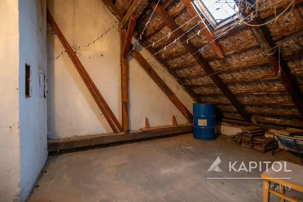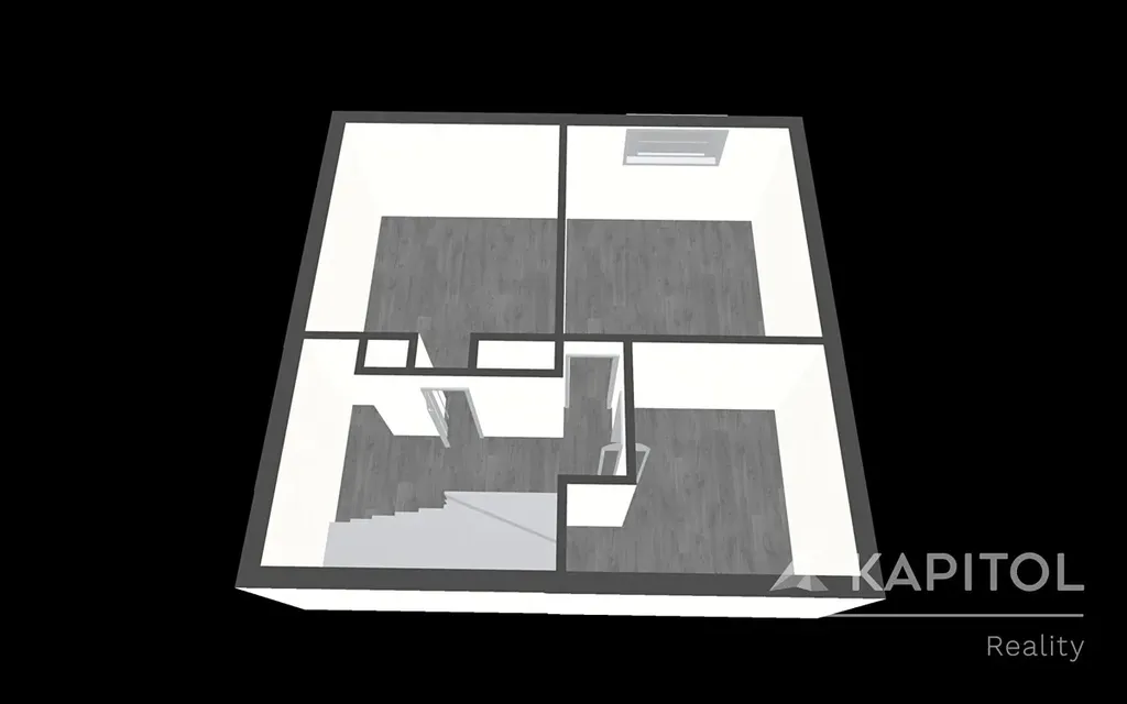 V patře se nachází jeden pokoj s rovným stropem a dvě části půdy s možností rekonstrukce na podkrovní pokoje.