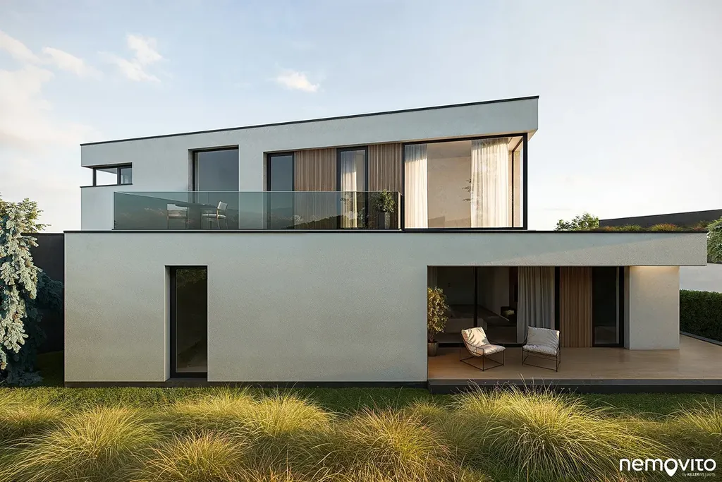 Návrh domu pracuje se zelenou střechou a maximálně respektuje ráz okolí. Ačkoliv je svými rozměry honosný, architektonickému studiu se podařilo objemnou stavbu navrhnout tak, aby po všech stránkách zapadala. Svůj podíl na tom nese také svažitý pozemek, který byl podmínkou zadání.