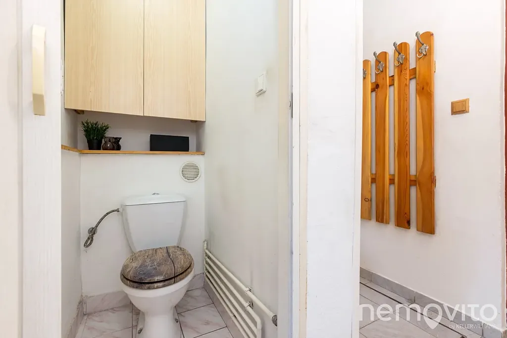 Dům je od svahu oddělen masivní opěrnou zdí a je zkolaudován jako rodinný dům s číslem popisným (není to předělaná chata). Byl využíván k trvalému celoročnímu bydlení. Dispozice je velmi jednoduchá. Dvě místnosti, plocha zhruba 50 m2, vestavěné spací patro a půda. WC je od koupelny oddělené. V rámci rekonstrukce byla řešena kuchyně, koupelna, podlahy, štuky, stropy, střecha, elektřina, voda, odpad, v roce 2024 také nová okna s trojskly a dvě nová střešní okna. Jedno okno je původní, neboť byl plánován výstup z kuchyně směrem na zahradu. Z původní stavby (cca 1920) zbylo jen obvodové zdivo.
