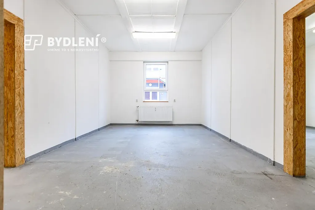 Dispozičně nabízí kancelář, kuchyňku, sociální zázemí (WC), tři menší průchozí sklady, jeden velký sklad a spojovací chodbu. Velkou výhodou jsou sekční vrata pro pohodlné zásobování a manipulaci se zbožím.