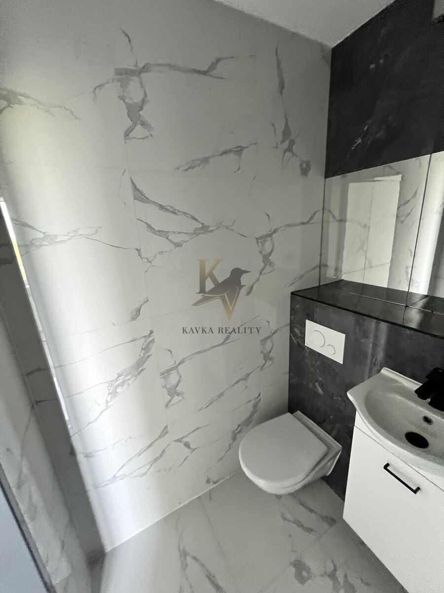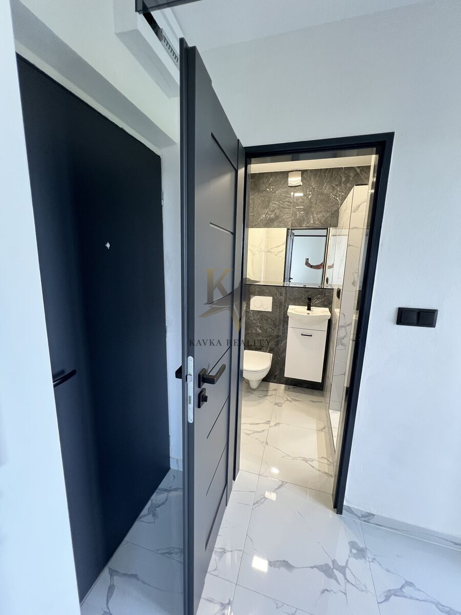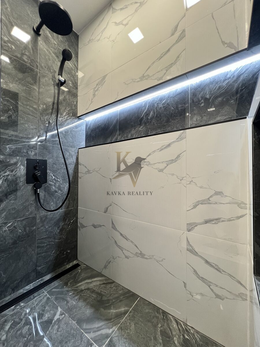 Je po kompletně moderní a nadčasově krásné rekonstrukci včetně nové kuchyňské linky s elektrospotřebiči ( sklokeramická varná deska s vestavěnou horkovzdušnou multifunkční troubou a odsavačem par vše kvalitní značky Gorenje a Whirlpool . ) Celá kuchyňská linka je v pěkném podsvícení , zabudovaného led pásku, který mění barvy. Koupelna a WC je zděná- rekonstruovaná- kde se nachází velký zděný sprchový kout osvětlený nikou s dekorativními policemi , ( ve sprše většinou poslouží jako neocenitelný úložný prostor pro šampon nebo sprchový gel, ve stěnách mimo ně slouží spíše jako police a má funkci dekorační – krásně se tady budou vyjímat květiny nebo třeba suvenýry z cest, či ručníky .) hranaté umyvadlo se skříňkou a zrcadlo zapuštěné v obkladu . Wc je závěsné značky Geberit . Krásná a kvalitní mramorová dlažba se nachází v kuchyni , chodbě v koupelně a na Wc . Ve zbylém pokoji se nachází plovoucí podlaha .