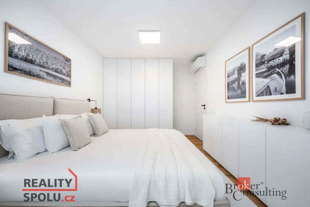 bez starostí. Anhydritové podlahy přinášejí teplo a komfort, hliníková francouzská okna světlo a nadčasový vzhled. Každá místnost má rekuperaci s Wi Fi ovládáním, dům je připraven na klimatizaci, připojený přes optický kabel a vybavený elektrickými hliníkovými žaluziemi. O teplo se stará kondenzační plynový kotel, v garáži je 400V zásuvka. Zahrada s terasou z WPC dřevoplastových desek je připravená k relaxaci.