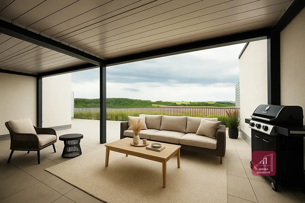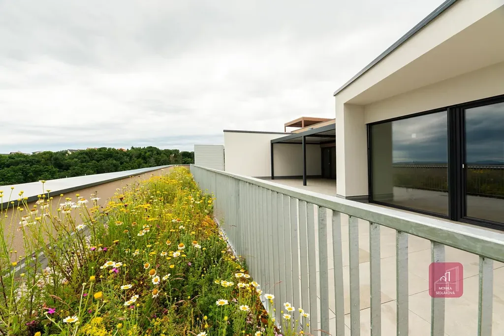 Byt s dispozicí 4+kk o rozloze 125 m s velkolepou terasou 96 m je přesně to místo, kde si rodina odpočine, dospělí načerpají klid a děti získají prostor rozběhnout se. A co víc díky jižní orientaci a okolní zeleni je tu příroda stále s vámi, ať vaříte oběd, čtete knihu nebo jen tak lenošíte. Čeká na vás kvalitní řemeslné provedení, 7 komorová plastová okna s trojsklem, podlahové vytápění a elektricky ovládané předokenní žaluzie.