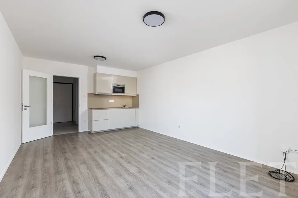 Interiér bytu působí vzdušně a elegantně. Prakticky řešený úložný prostor v předsíni přispívá k celkovému komfortu bydlení. Kuchyňský kout je vybaven kuchyňskou linkou se spotřebiči – lednicí s mrazákem, mikrovlnnou troubou a varnou deskou. V koupelně se nachází vana s toaletou, k dispozici je přípojka na pračku.