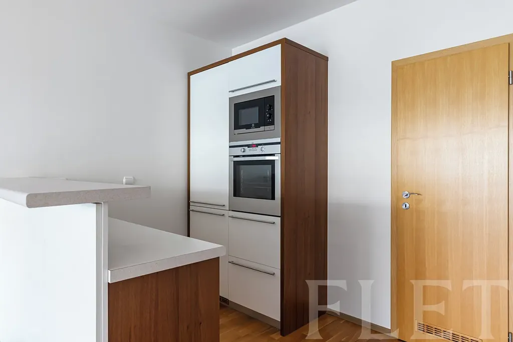 Dominantou bytu je rozlehlý obývací pokoj s kuchyňským koutem, který nabízí dostatek místa nejen pro pohodlnou sedací soupravu, ale i plnohodnotný jídelní stůl či pracovní kout. Díky promyšlené dispozici působí prostor vzdušně a přehledně. Kuchyň je plně vybavena spotřebiči – lednicí s mrazákem, troubou, mikrovlnnou troubou, myčkou, varnou deskou i digestoří, pračka je prakticky umístěna v kuchyňské části. Ložnice poskytuje dostatek prostoru pro velkou postel i úložné řešení. Koupelna je vybavena sprchovým koutem, toaleta je samostatná, což zvyšuje komfort každodenního fungování. Příjemným bonusem je balkon, ideální pro ranní kávu či večerní relax, dále sklep a garážové stání, které je již zahrnuto v pronájmu.