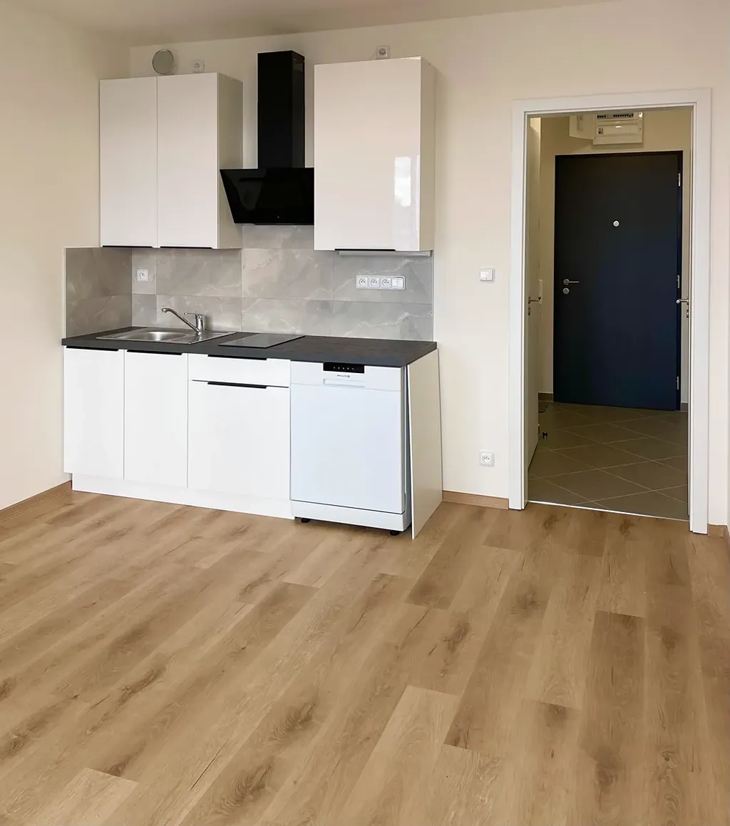 Byt je vybaven novou kuchyňskou linkou, varnou deskou, digestoří a myčkou nádobí.