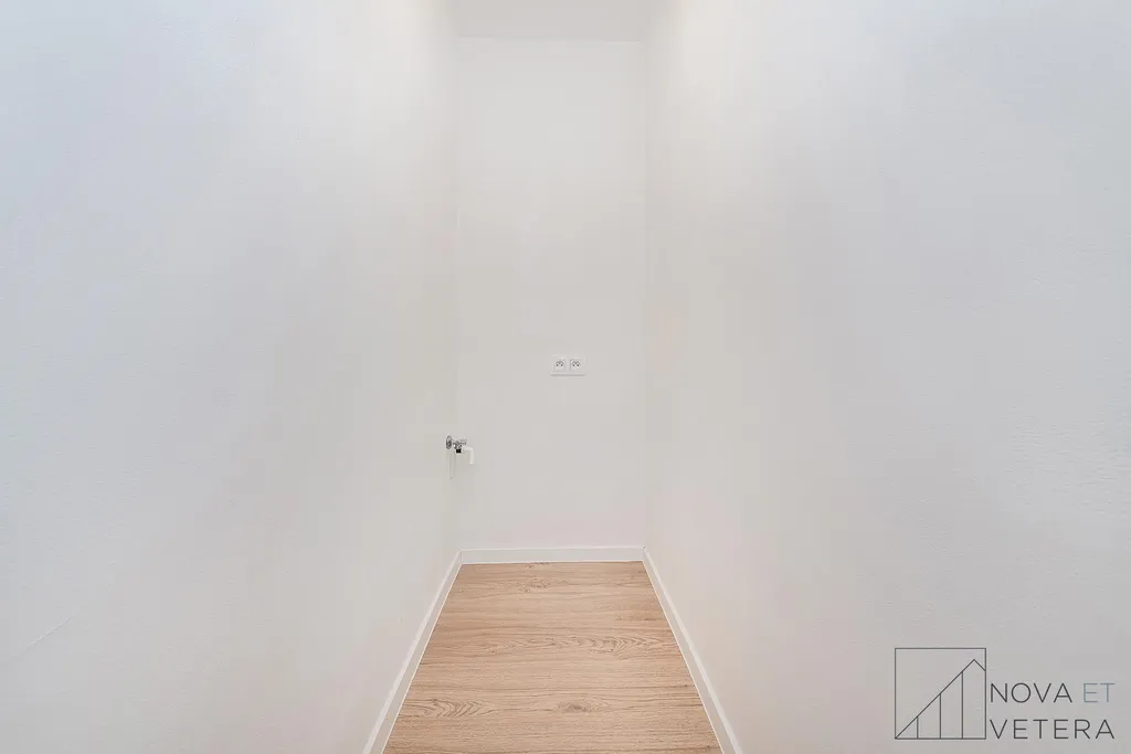 Byt aktuálně prochází kompletní a kvalitní rekonstrukcí a bude připraven k nastěhování v květnu 2026. Rekonstrukce zahrnuje nové rozvody elektřiny, vody a odpadů, moderní dřevěné podlahy, obklady a dlažbu italské značky Marazzi a koupelnu se sanitou značky Grohe. Součástí bytu bude také nová kuchyňská linka vybavená vestavnými spotřebiči prémiové značky Bosch s prodlouženou zárukou 5 let. Díky tomu bude byt připraven k okamžitému užívání ve vysokém standardu, bez nutnosti dalších investic.