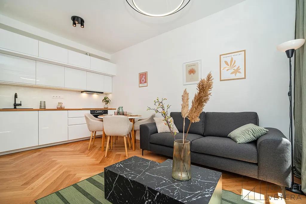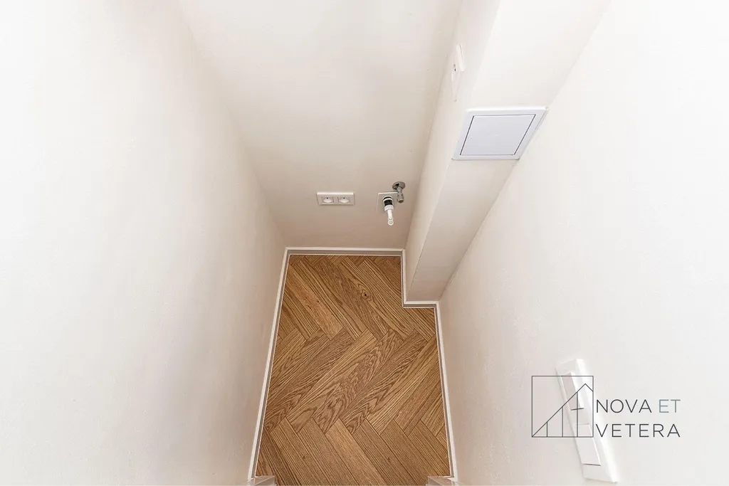 Rekonstrukce zahrnuje nové rozvody elektřiny, vody a odpadů, moderní dřevěné podlahy, kvalitní obklady a dlažbu značky Marazzi, nové rozvody elektřiny, vody a odpadů, sanitu značky GROHE a moderní kuchyňskou linku včetně vestavných spotřebičů značky Gorenje s prodlouženou pětiletou zárukou. .