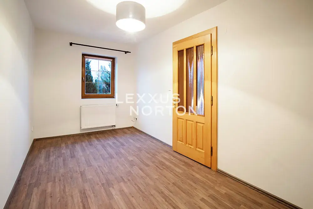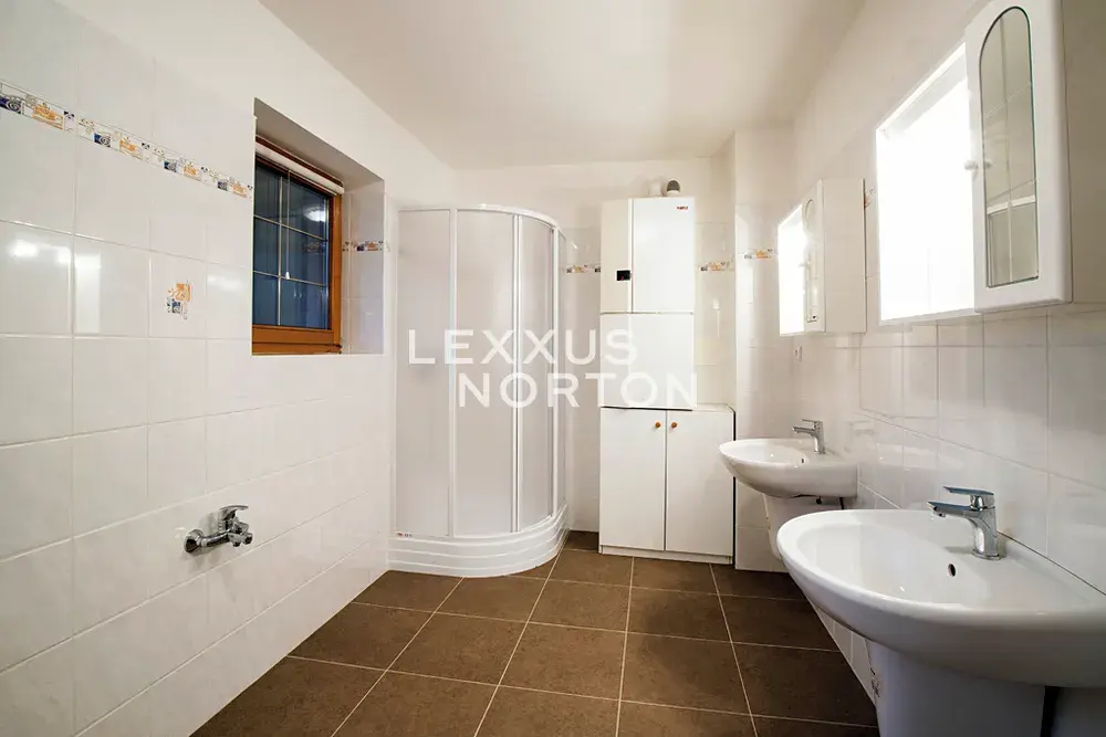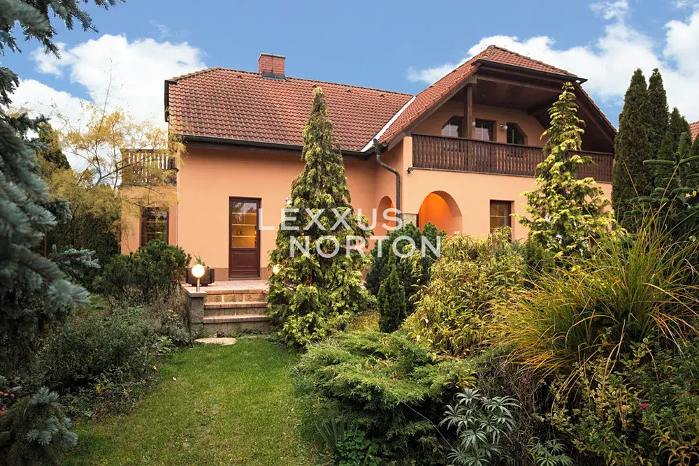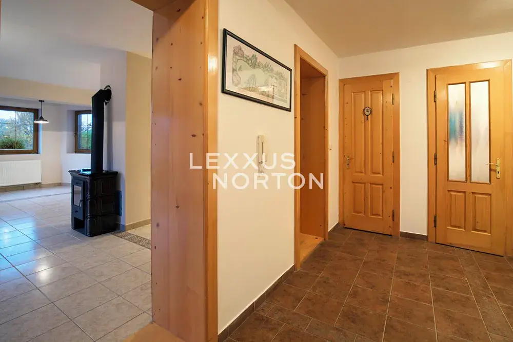 Tento prostorný rodinný dům o dispozici 5+kk nabízí celkovou obytnou plochu 200 m2, rozloženou do dvou nadzemních podlaží. V přízemí se nachází vstupní hala, obývací pokoj s krbem, kuchyňský kout a jídelní prostor, pracovna/ložnice, koupelna, samostatná toaleta a komora. V patře domu jsou umístěny tři ložnice, z nichž dvě mají přímý přístup na balkony, druhá koupelna a komora. K domu náleží terasa, udržovaná zahrada (2670 m2) s okrasnou zelení a vzrostlými stromy a garáž.