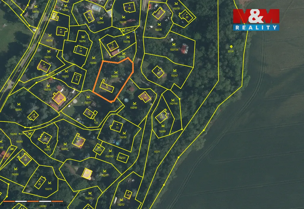 Nabízíme k prodeji rekreační chatu se zahradou, která je na pozemku s celkovou výměrou 746 m2, v obci Mradice v blízkosti řeky Ohře. Nemovitost je situována v klidné chatové oblasti v krásné přírodě, ve vzdálenosti pouhé dvě minuty pěší chůze od řeky Ohře, mimo záplavovou oblast. Chata je dispozičně řešena jako 2+1 s nedokončenou úpravou v podkroví, které nabízí další potenciál k rozšíření obytného prostoru dle vlastních představ. Do chaty je zavedena elektřina (220 V). Voda není přivedena přímo do objektu, avšak v rámci chatové osady je zajištěn celoroční odběr. Toaleta je řešena venkovním suchým WC. Vytápění zajištěno kamny na tuhá paliva nebo možnost elektrických přímotopů..