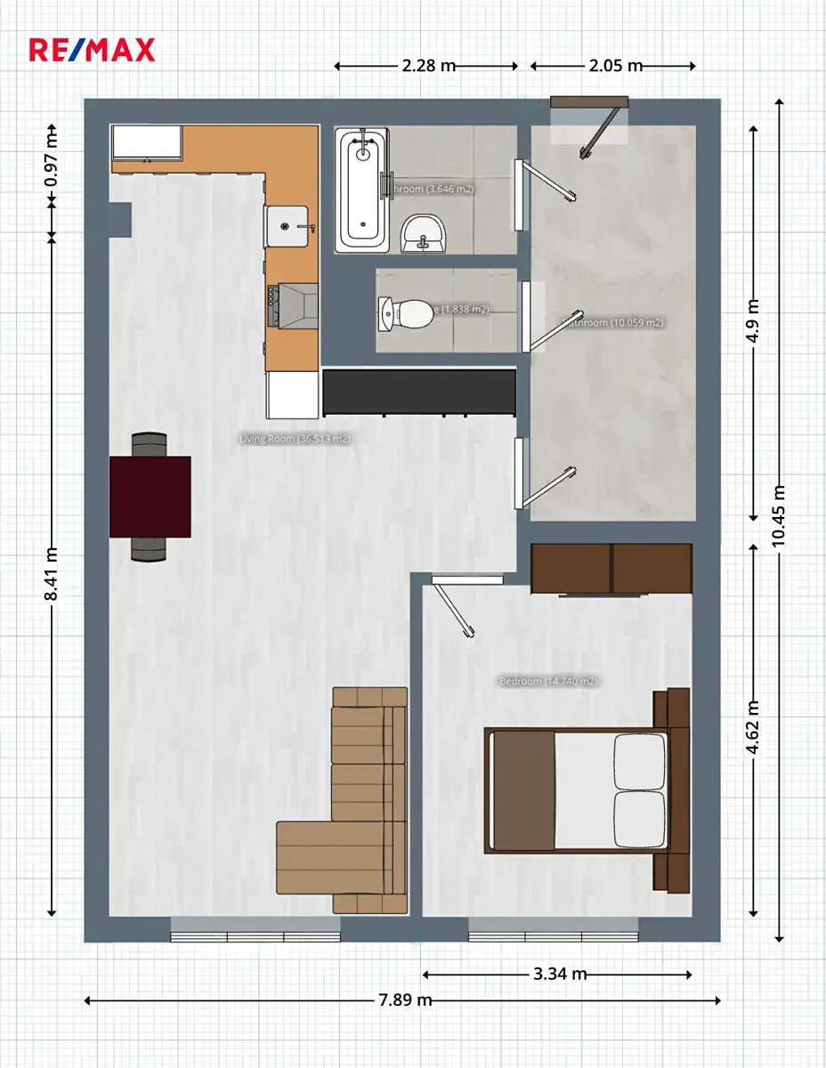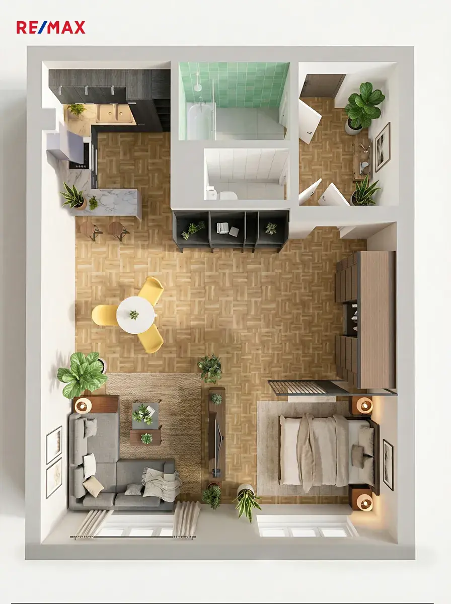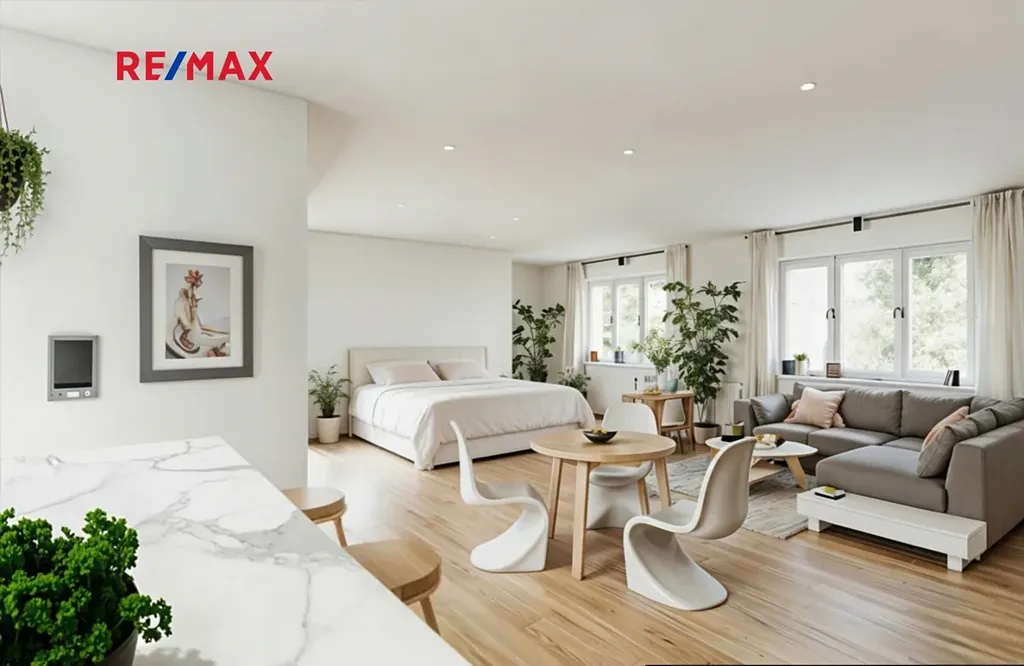 Interiér působí útulně a prakticky, s dostatkem denního světla. Velkou výhodou je, že prostor nabízí i překvapivě flexibilní možnosti úprav. Díky jednoduché rekonstrukci – například odejmutím nenosné sádrokartonové příčky – můžete byt snadno otevřít, propojit místnosti a vytvořit tak úplně jiný pocit z prostoru. Vzdušnější obývací část, větší kuchyňský kout nebo moderní otevřený styl jsou zde dosažitelné s minimálním zásahem i náklady. K bytu navíc náleží sklep o velikosti 2 m², který poskytuje další úložný prostor.