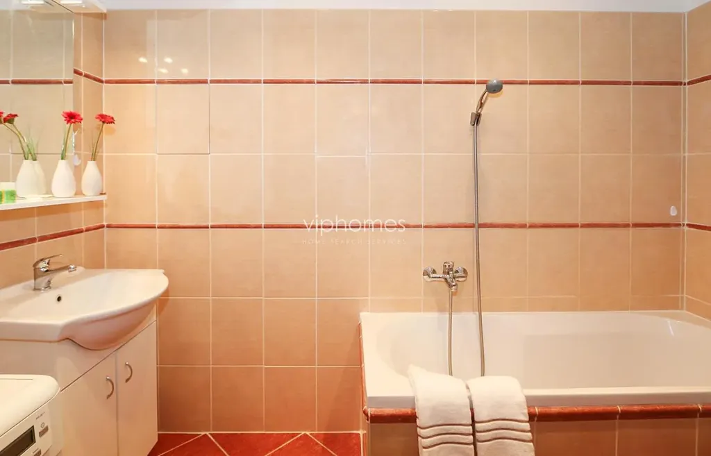 Byt má obývací pokoj s plně vybaveným kuchyňským koutem, 2 ložnice, koupelnu s toaletou a vstupní chodbu. Klimatizace.