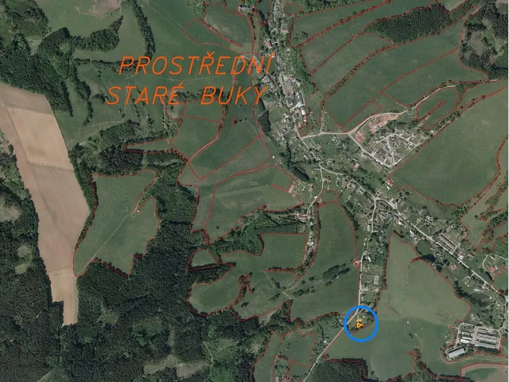 Předmětem dražby o výměře 154 m2 u obce Prostřední Staré Buky. Nachází se v jižní části obce na levém břehu Žďárského potoka. V katastru nemovitostí je veden jako trvalý travní porost. Obec