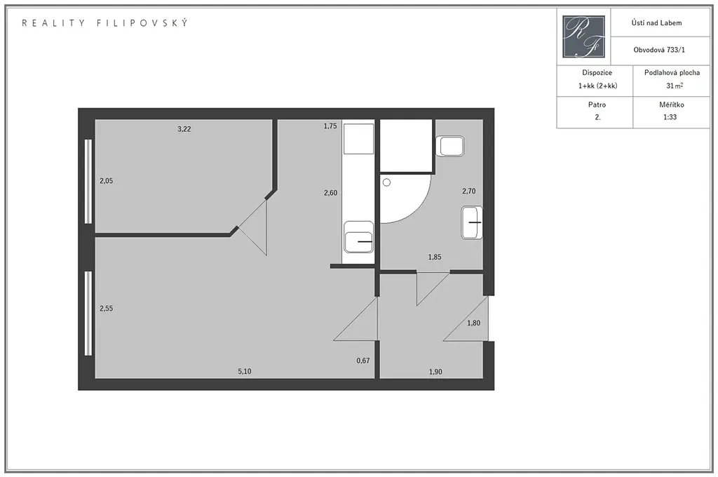Dovoluji si Vám nabídnout pronájem mimořádně dobře řešeného bytu 1+kk, který je dispozičně upraven na dispozici 2+kk.