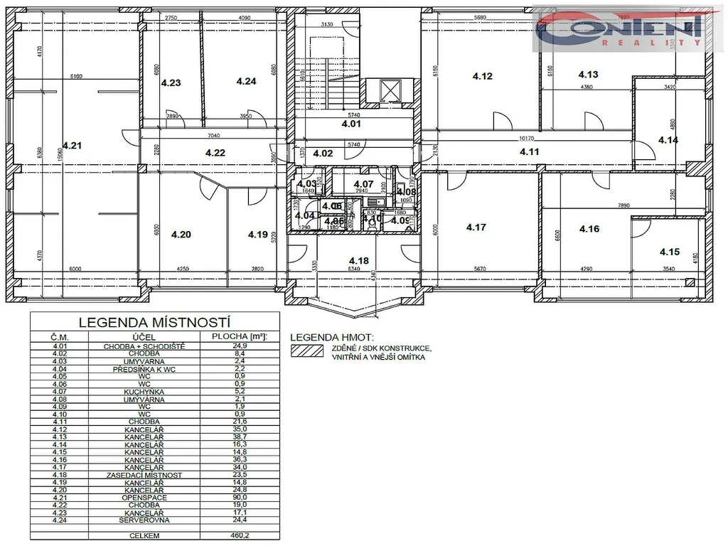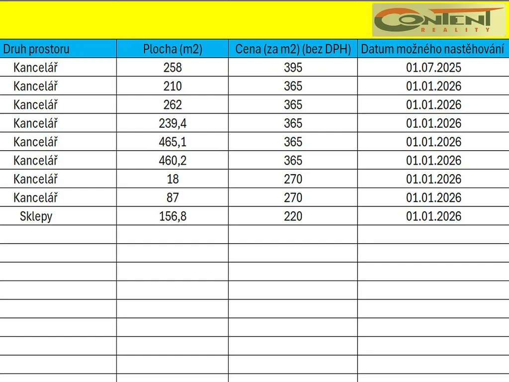 - v budově k pronájmu další kancelářské prostory 210 m² - 465 m²,
