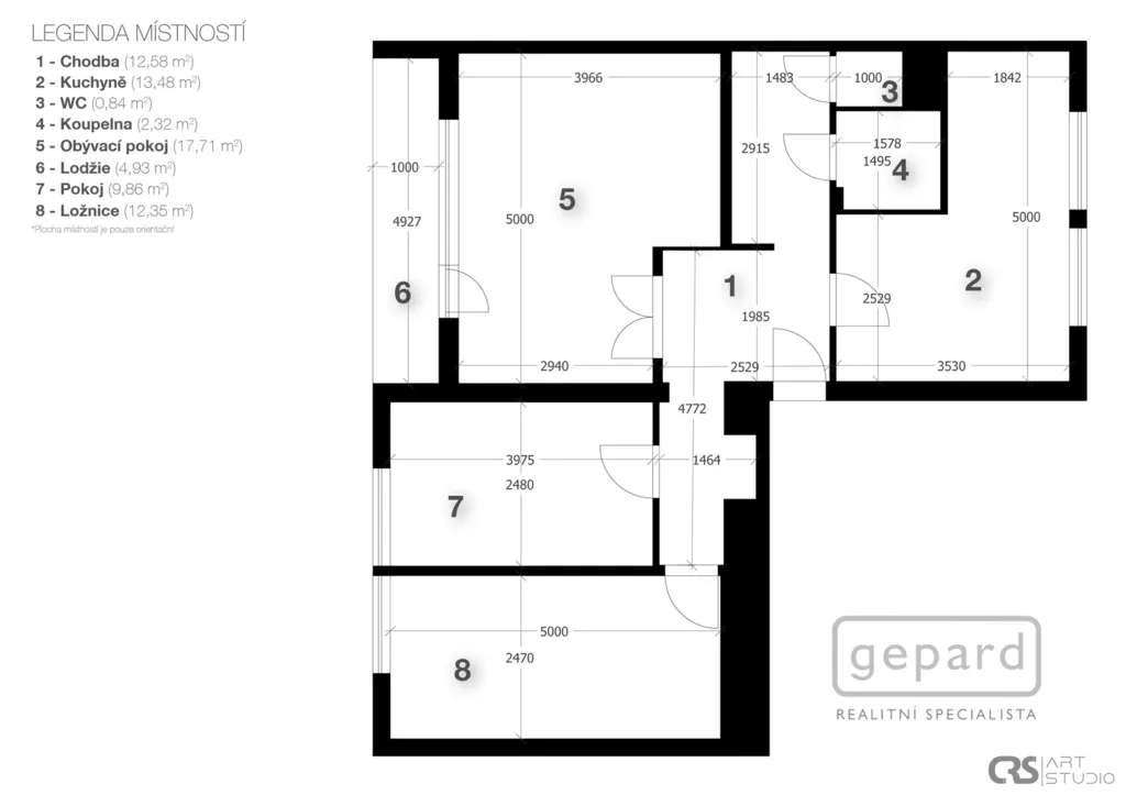 Byt se nachází v 5. patře udržovaného devítipodlažního domu s výtahem. Dispozice je velmi praktická a promyšlená – z prostorné předsíně je vstup do všech místností, pokoje nejsou průchozí, což zajišťuje dostatek soukromí i komfortní bydlení. Díky tomu je byt vhodný jak pro rodinu, tak pro pár nebo i spolubydlení.