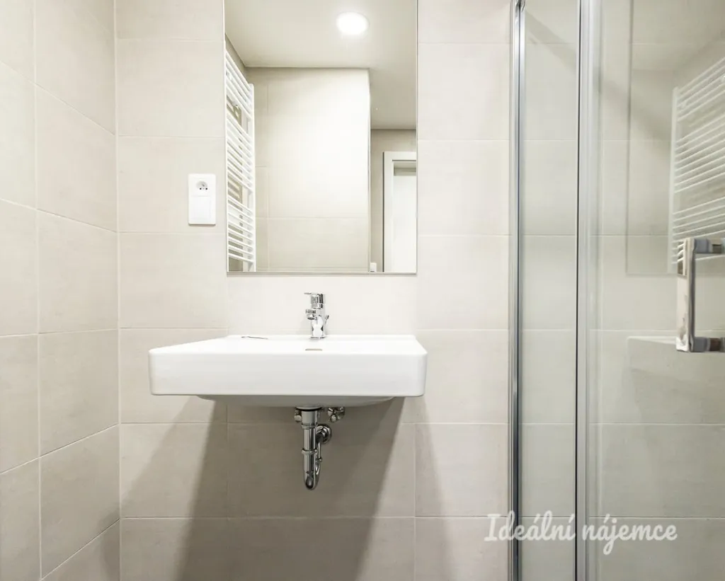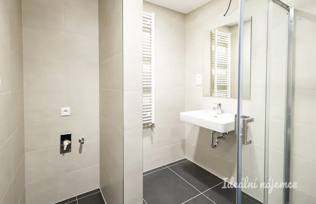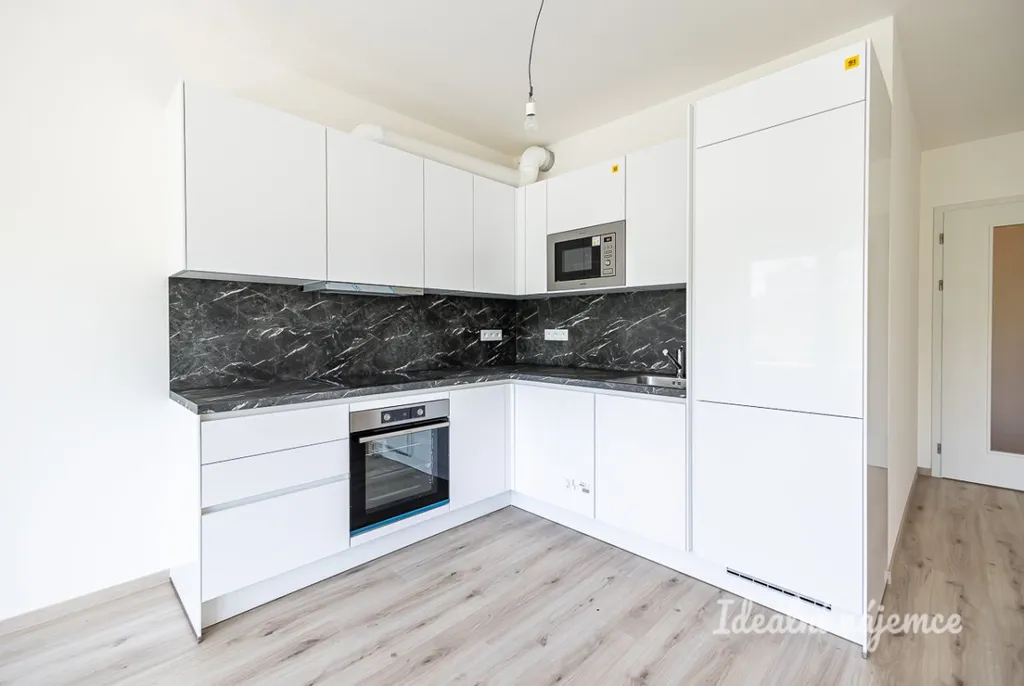 Nabízí se nevybavený. V kuchyni najdeme ledničku, myčku nádobí, indukční desku i vestavěnou troubu. Obývací část se nabízí nezařízená. Ložnice je taktéž nezařízená. V koupelně najdeme sprchový kout, toaletu a umyvadlo. Pračka není součástí pronájmu. V předsíni se nachází praktické šatní skříně.