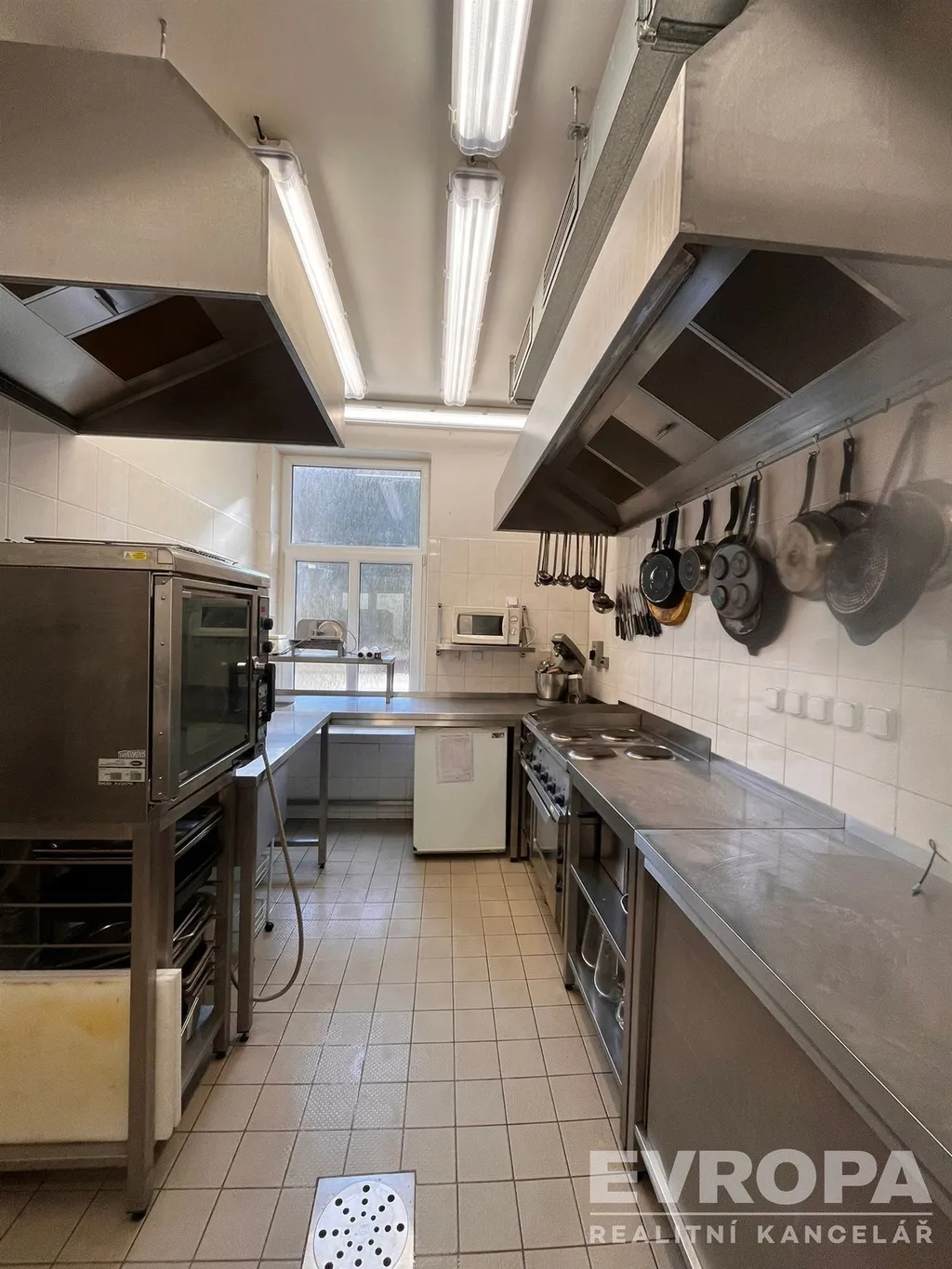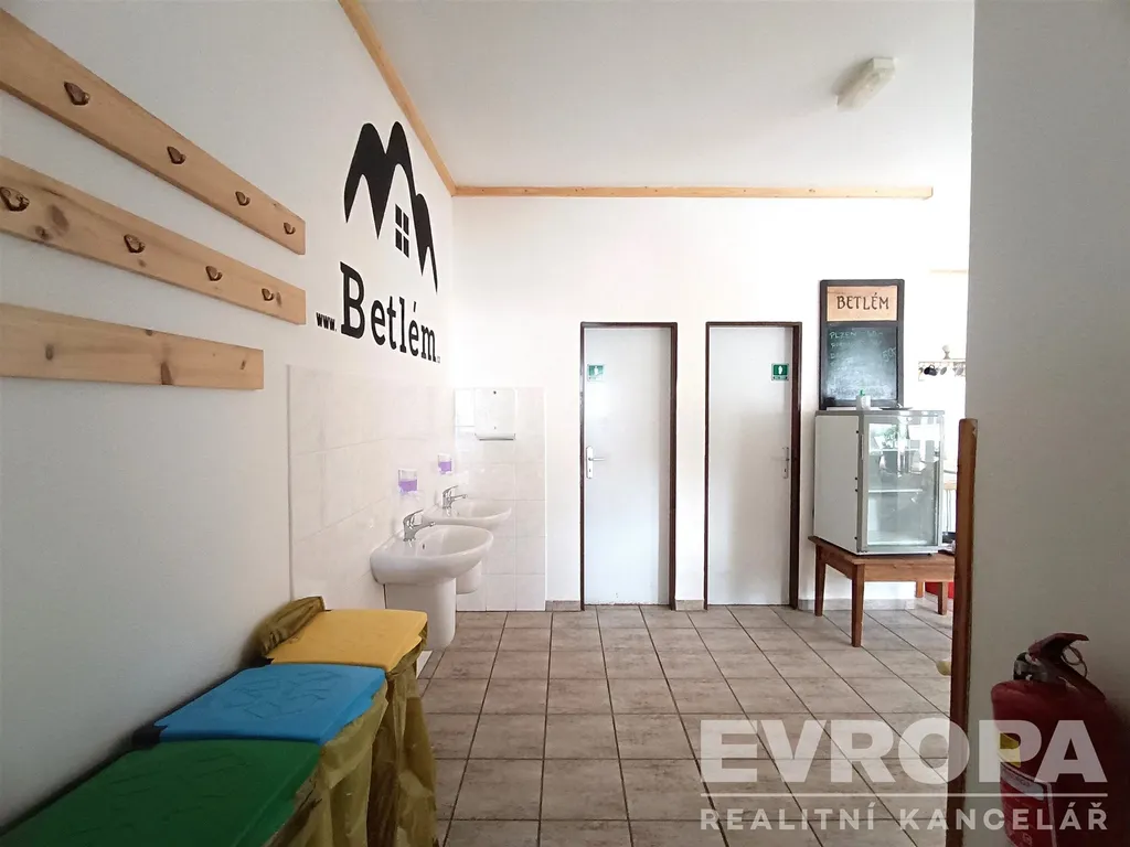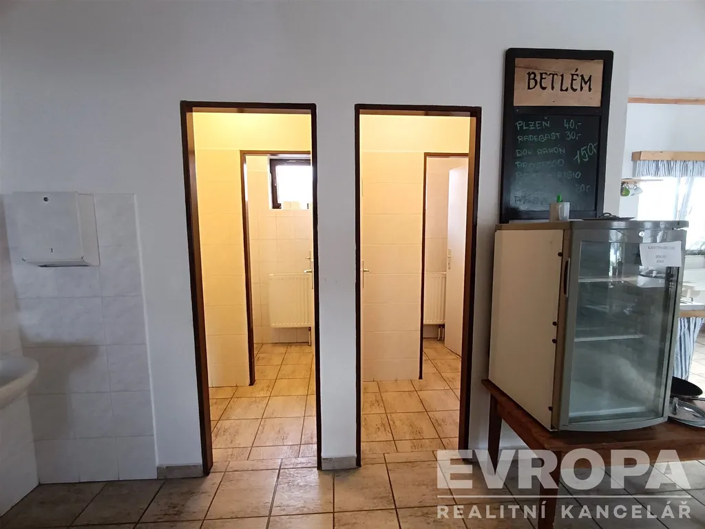 Dispozice: společenská místnost (možno využít jako kavárnu), hlavní prostor restaurace vč. toalet pro muže/ženy, vybavená kuchyně, úklidová místnost, toaleta pro zaměstnance, 3x skladový prostor pro potřeby kuchyně.