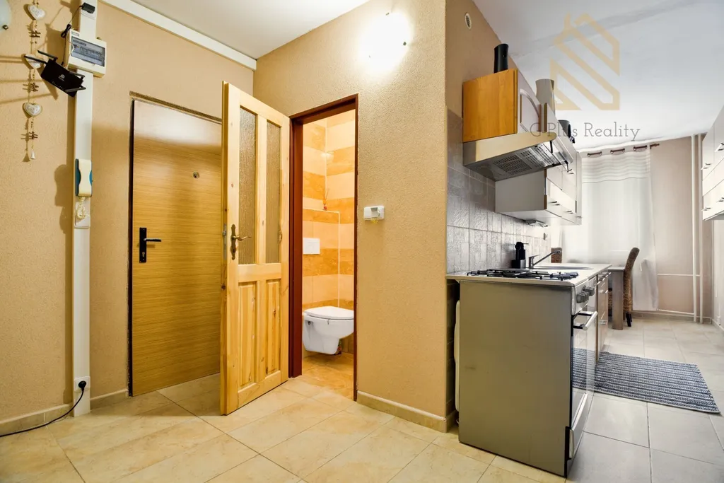 Po vstupu do bytu se naleznete v prostorné chodbě, která je ideální pro vestavěnou skříň nebo další úložné prostory. Z chodby se vchází do dvou samostatných pokojů, které jsou aktuálně využívány jako obývací pokoj a ložnice. Z obývacího pokoje je navíc přístup na lodžii, která poskytuje venkovní posezení. Kuchyň je samostatná, s dostatkem prostoru pro jídelní stůl. Koupelna a WC jsou oddělené, každý s vlastním vstupem, což zajišťuje větší pohodlí a soukromí.