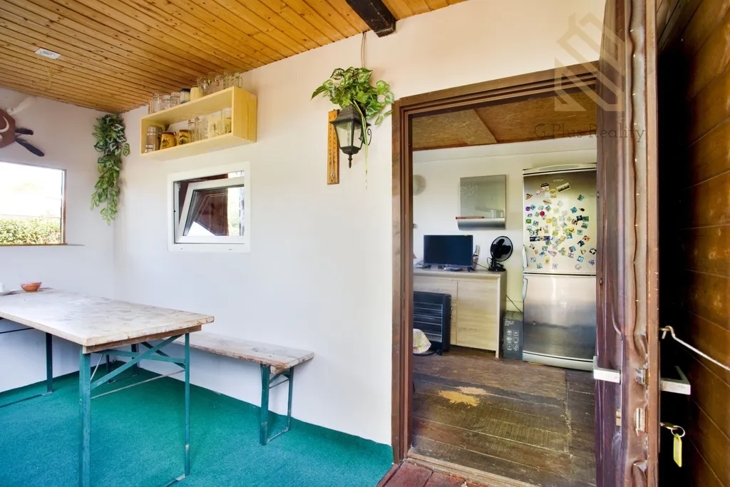 Chata je pro pojená s karavanem, který je zastřešený. Možnost používání sociálního zařízení v kempu.