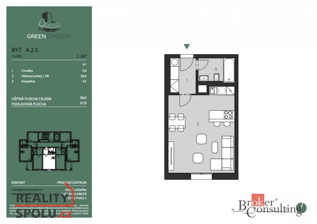 Projekt Green Chodov se skládá z 11podlažního bytového domu a 2podlažního polyfunkčního domu se společným podzemním parkováním. Je ideální jak pro vlastní bydlení, tak i jako bezpečná investiční příležitost – díky blízkosti metra, administrativních center a přírody.