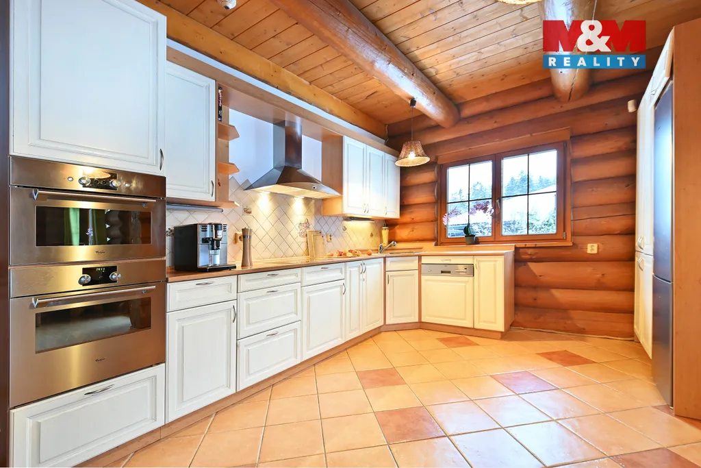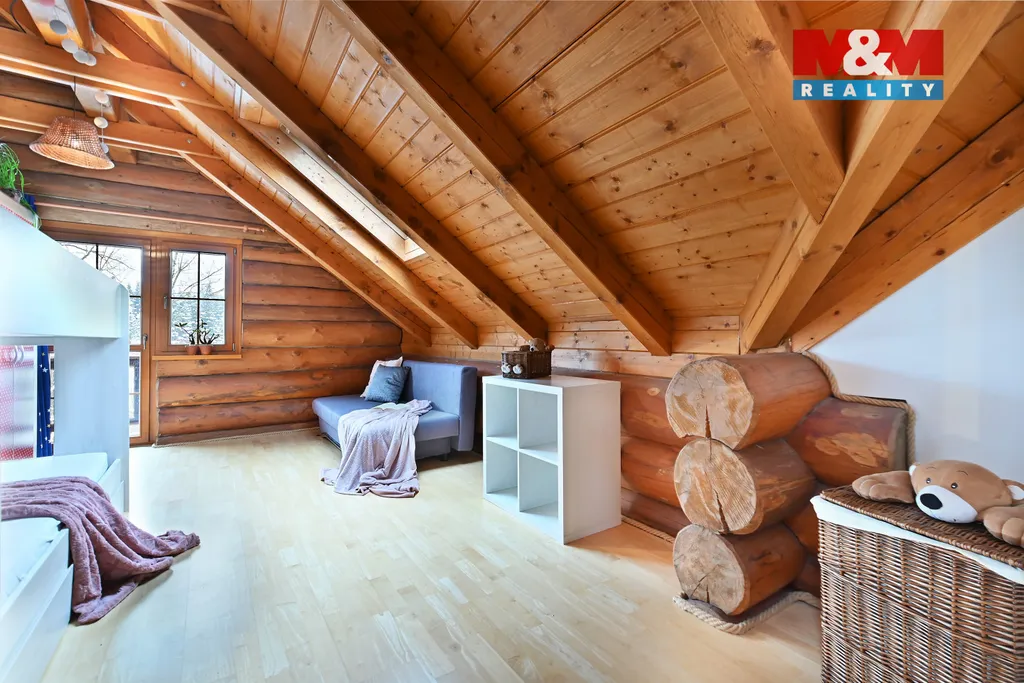 Místo kde voní dřevo, praskají kachlová kamna a každý kout má svou atmosféru. Tento nádherný celodřevěný srub nabízí velkorysý prostor bez kompromisů a skutečný pocit domova. Srdcem domova je otevřený obývací pokoj s plně vybavenou kuchyní a jídelnou,kde uprostřed stojí poctivá kachlová kamna. Přízemí je bezbariérové - pokoj pro hosty,koupelna se sprchovým koutem a toaletou, místnost s přípravou pro saunu. V patře klidová zóna: hlavní ložnice, dva dětské symetrické pokoje,pracovna či ložnice a obrovská koupelna s velikou vanou, další velká místnost s toaletou pračkou a sušičkou. Garáž na jedno auto s technickým koutem kde je zabudováno 2x tepelné čerpadlo na vytápění domu,a ohřev vody,podlahové vytápění Zahrada o velikosti 1186 m2 s ovocnými stromy a keři nabízí prostor pro přírodní jezírko,krytá terasa i pohodlné parkování o velikosti 100m2.Klidná lokalita bez další výstavby, obecní voda i kanalizace, vlastní 44m vrtaná studna. Domov pro ty, kteří hledají harmonii, prostor a soukromí.