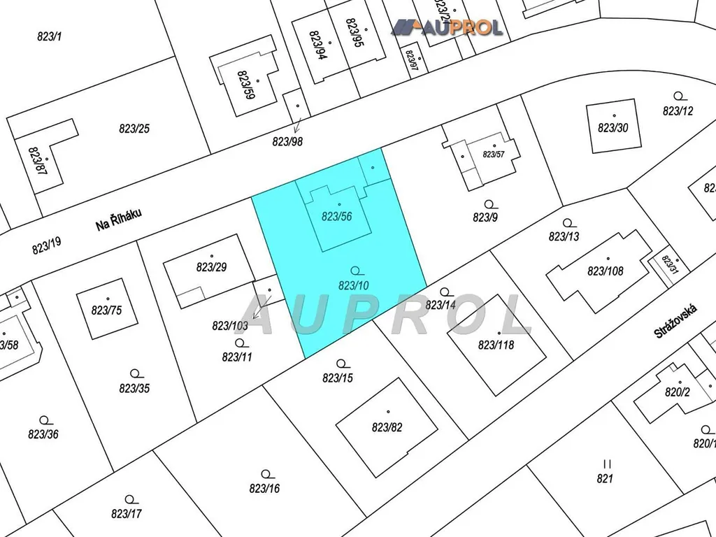 parc. č. 823/56 – 187 m² (zastavěná plocha a nádvoří), parc. č. 823/10 – 585 m² (zahrada), LV 120, KÚ Radotín, 738620.
