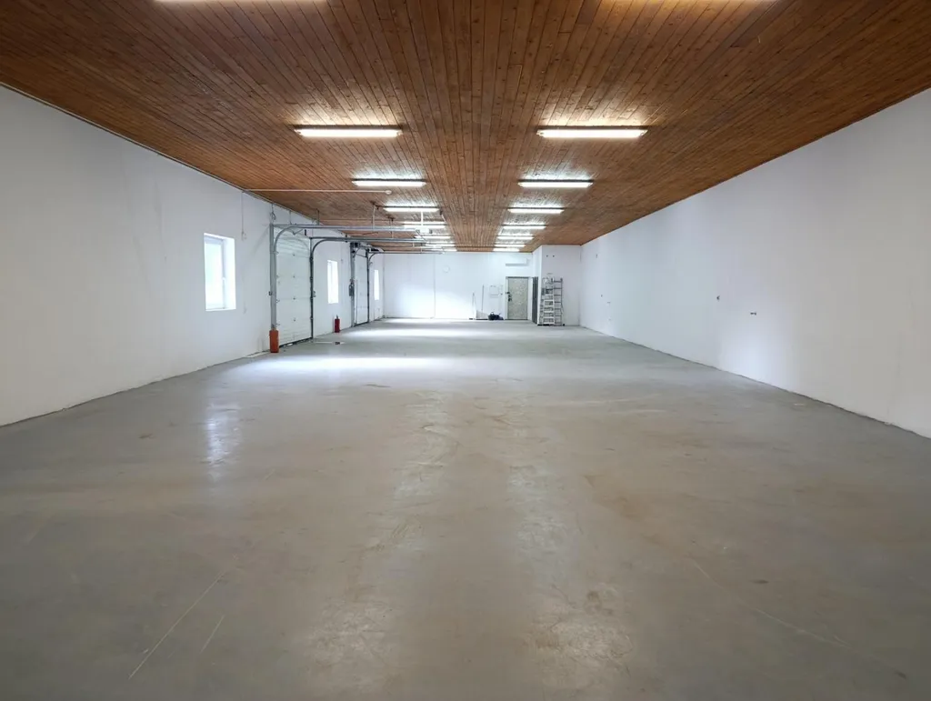 Za administrativní částí se nachází přízemní skladovací budova o celkové ploše prostor 374 m2 a výškou stropu 3,25 m. Do skladu lze zavážet materiál dvěma vjezdy s automatickými vraty o výšce 2,6 m a šířce 2,9 m. V části skladovací budovy se nachází reprezentativní vzorkovna, která může sloužit jako prodejna pro veřejnost, výdejní místo eshopu či jen jako další skladovací plocha.