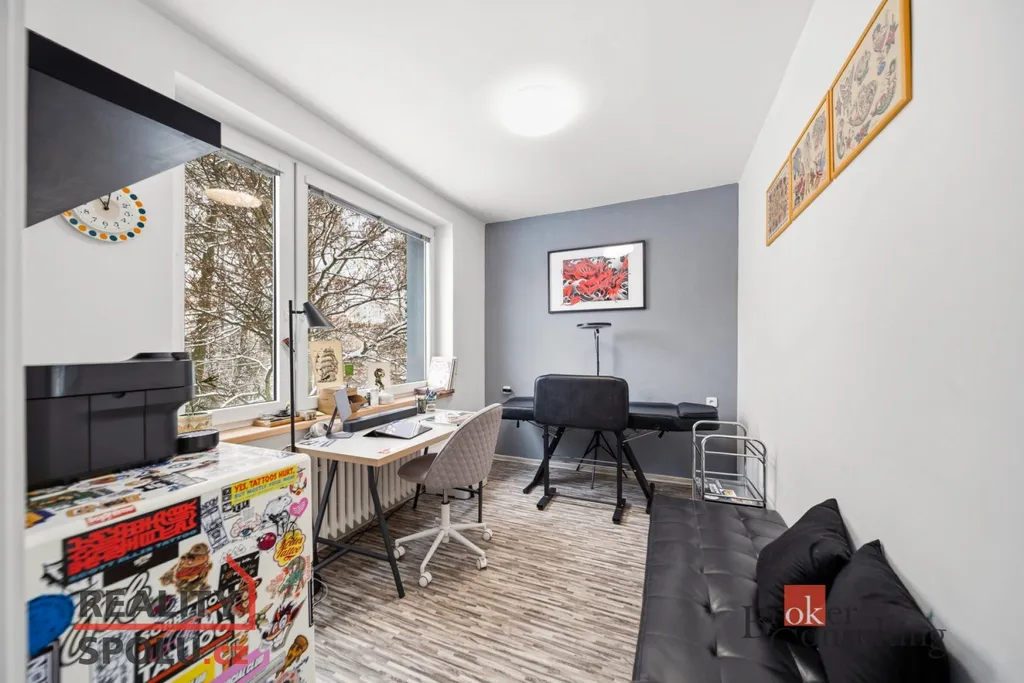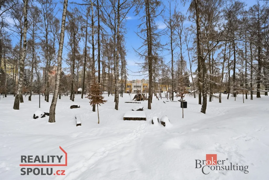 Byt se nachází v domě s výtahem a jeho velkou výhodou je příjemný výhled do parku, který zajišťuje klidné bydlení a dostatek zeleně přímo u domu. Součástí je také sklepní kóje.