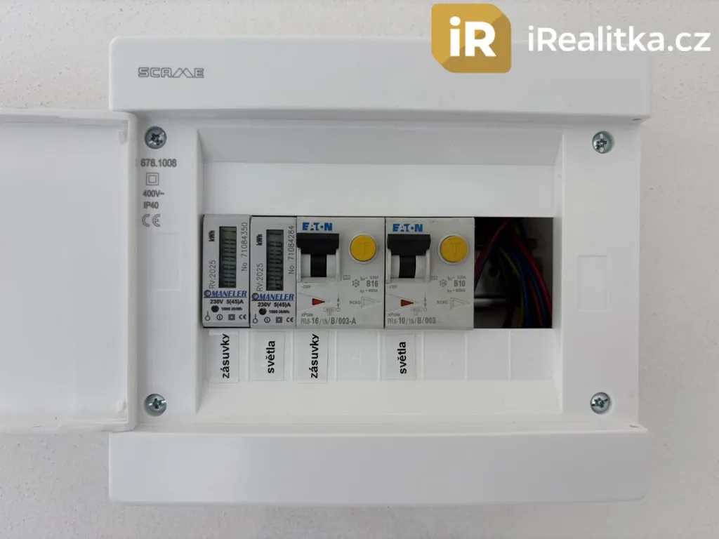 - kompletně nová elektroinstalace uvnitř garáže (rozvody, světla, zásuvky, jističe, proudový chránič, vč. revize)