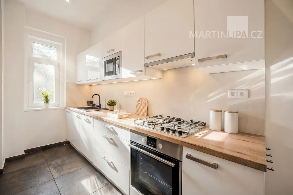 Je to prostě byt pro někoho, kdo ocení vkusnou rekonstrukci ve starší zástavbě a chce mít všechno po ruce. Přijďte se podívat sami, jestli na vás ten prostor zapůsobí stejně příjemně jako na mě.