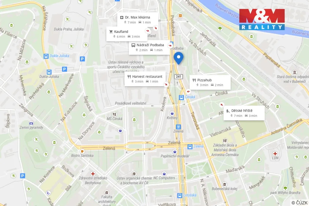 Byt nabízí skvělou dopravní dostupnost – v blízkosti zastávky tramvaje Nádraží Podbaba a stanice metra A - Dejvická.