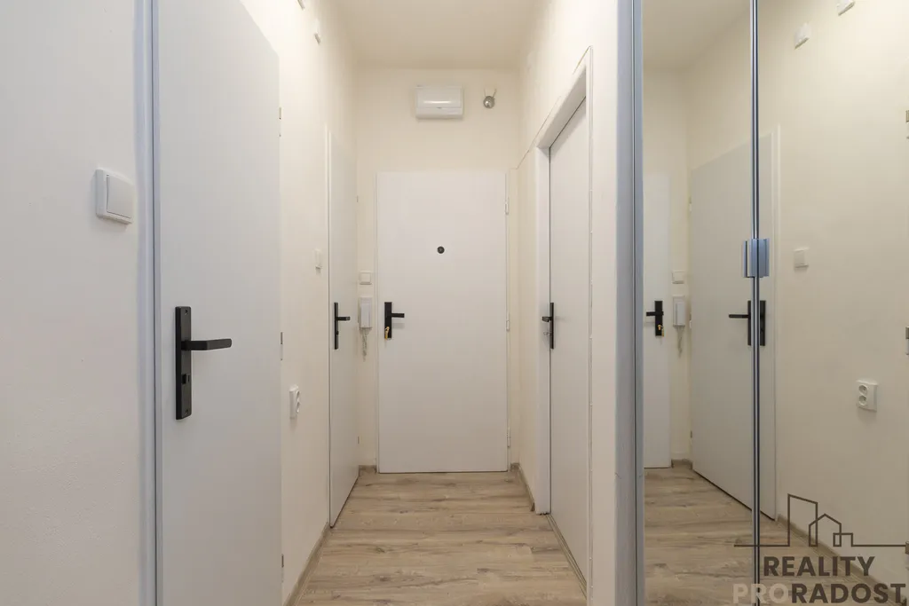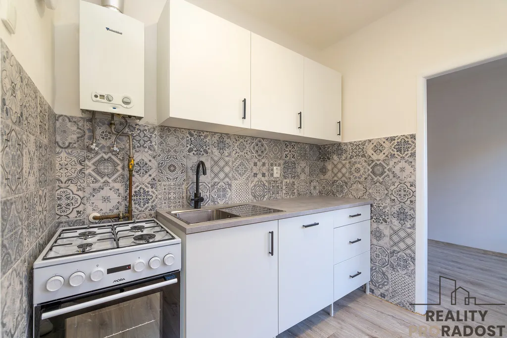 Interiér bytu nabízí komfortní bydlení. Na podlahách v pokojích jsou příjemné koberce, zatímco v kuchyni, na chodbě a v jednom z pokojů najdete praktické plovoucí podlahy. Koupelna a toaleta jsou oddělené, což přispívá k vyššímu komfortu užívání. Obě místnosti mají na podlaze dlažbu a v koupelně je připravena přípojka pro pračku. Srdcem bytu je nová kuchyňská linka, která je již vybavena vestavěnou myčkou a kombinovaným sporákem. Po dohodě s majitelem je možné byt částečně dovybavit dalšími spotřebiči, jako je lednice či mikrovlnná trouba.