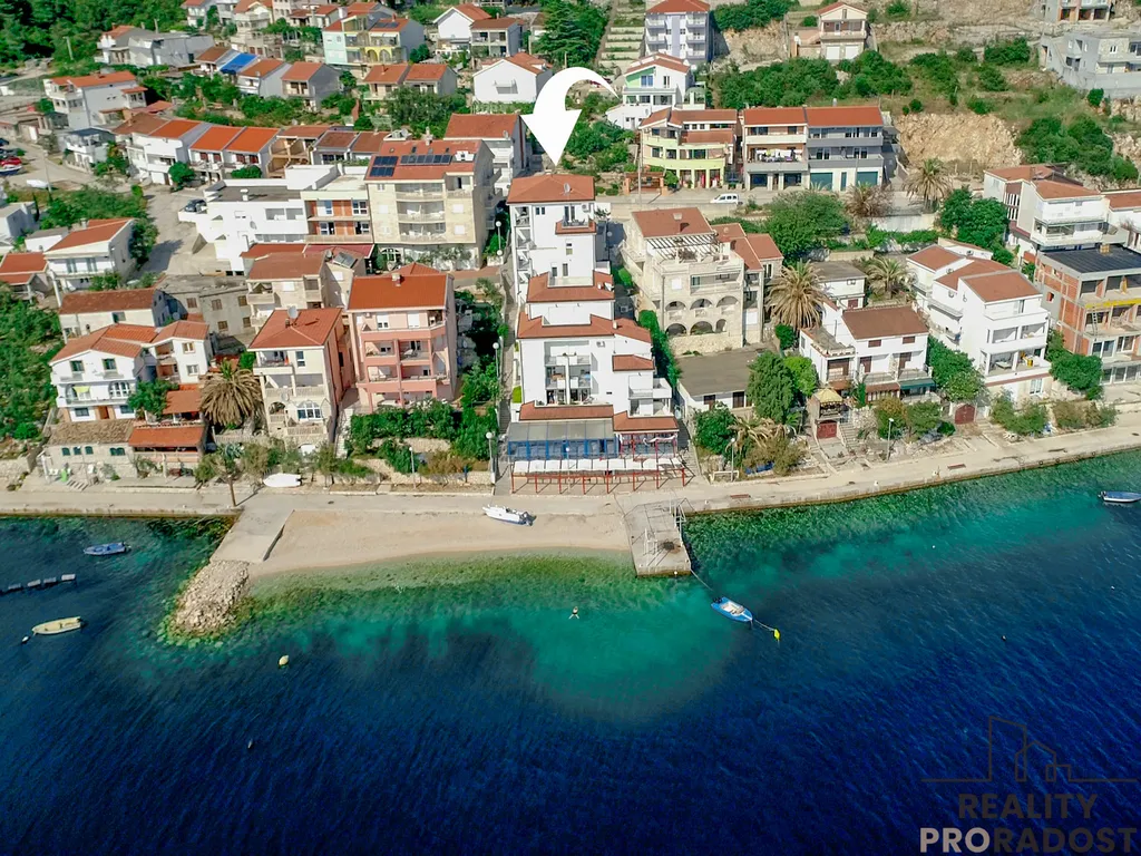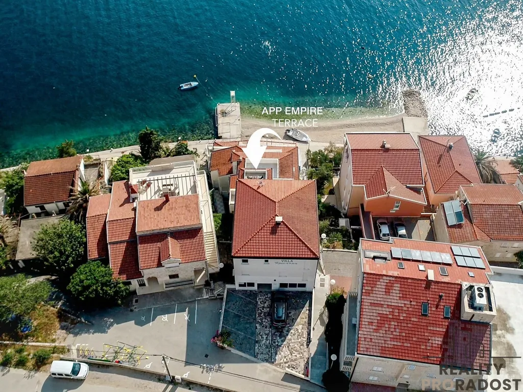 Lokalita: Komarna, Jižní Dalmácie, Chorvatsko (pouhých 40 m od moře) Představte si, že se probudíte do sluncem zalitého rána, z ložnice vyjdete rovnou na privátní terasu a nadechnete se svěžího mořského vzduchu. K ranní kávě vám hraje šumění vln a výhled na malebné malé ostrůvky a poloostrov Pelješac. Předvečer pak budete pospíchat z výletu abyste z terasy mohli pozorovat západ slunce nad ostrovem Hvar a nádherně osvětlený most na Pelješac. Přesně takový životní styl nabízí luxusně zrenovovaný penthouse „Empire“. Tento výjimečný apartmán o dispozici 4+kk (111 m²) neznamená jen nákup nemovitosti. Je to vstupenka k bezstarostnému odpočinku a zároveň správný investiční krok.