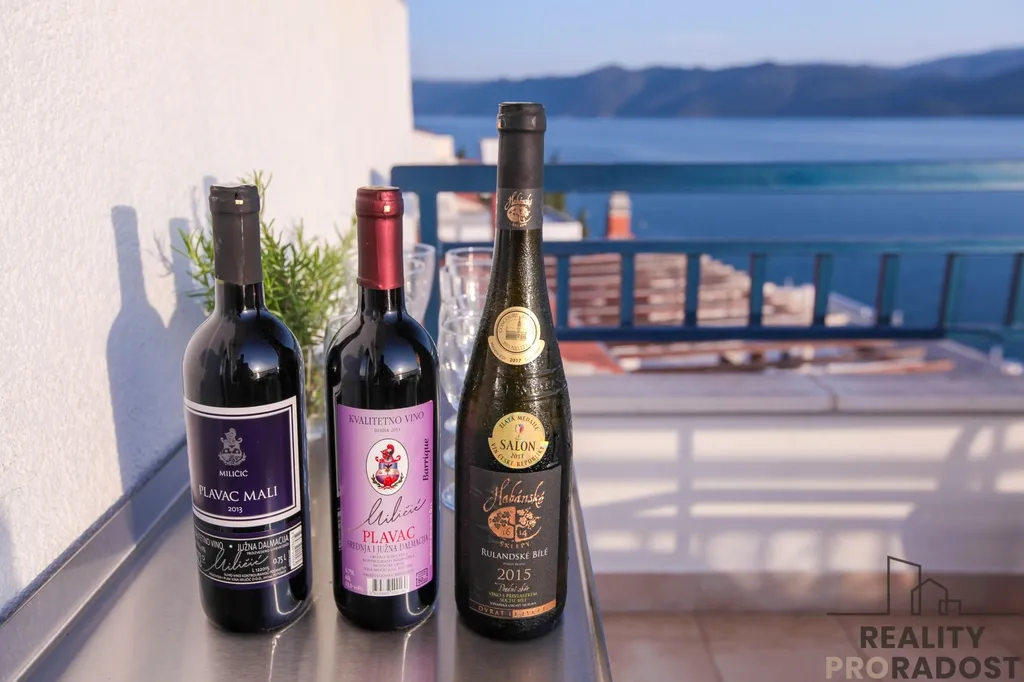 Tři terasy: Penthouse disponuje úctyhodným venkovním prostorem (přes 25 m²). Z hlavní terasy s elektrickým grilem se nabízí dechberoucí výhledy na moře a nezapomenutelné západy slunce nad ostrovem Hvar. Další dvě boční lodžie patří k ložnicím.