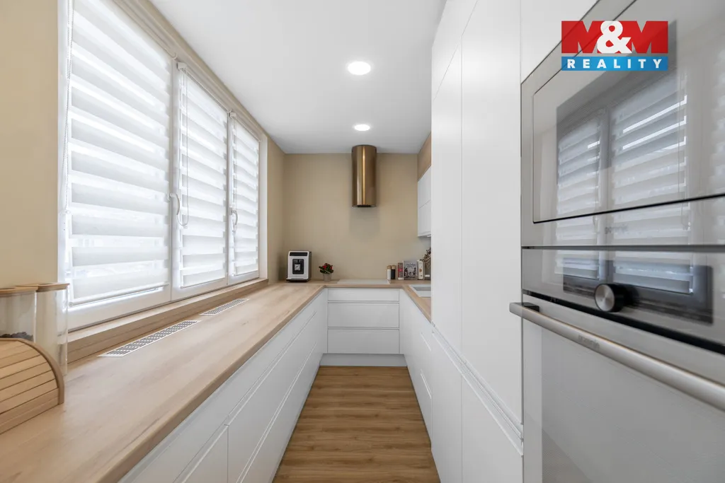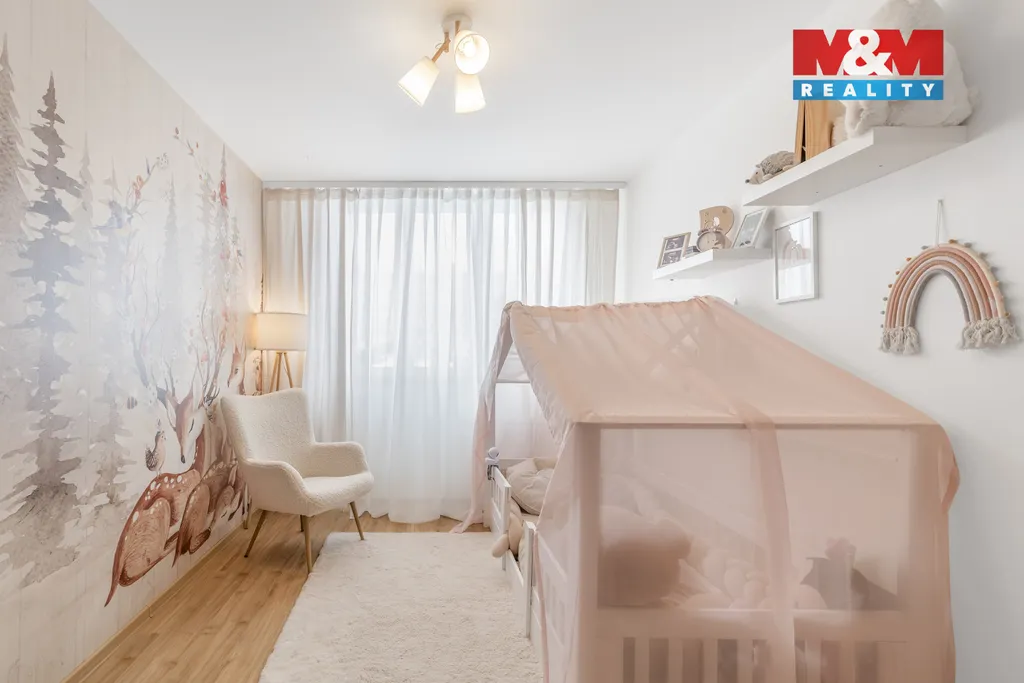 Exkluzivně nabízíme k prodeji byt v osobním vlastnictví o velikosti 4+1, s lodžií, o celkové výměře 86 m2, po velice pečlivé, designové, do detailu zhotovené rekonstrukci. Byt se skládá z kuchyně s vestavnými spotřebiči a velkým množstvím úložných skříněk, na ni navazujícího prostorného obývacího pokoje s jídelním stolem a dále tří ložnic, z nichž první slouží jako manželská ložnice, druhá jako dětský pokoj a třetí má nyní funkci dámské šatny s kosmetickým stolkem. Velkoryse pojatá koupelna disponuje dvěma umyvadly, sprchovým koutem i vanou. Hned vedle koupelny je samostatné WC. Další úložné prostory se pak nacházejí v předsíni, tak jako i dvě menší komory, ve kterých jsou umístěny pračka se sušičkou a v druhé technické zázemí. K dispozici je také nadstandardně velký sklep s možností uložení kočárku, kol atd. Dostupnost MHD, tak jako blízkost školek, škol i veškerých služeb je samozřejmostí.