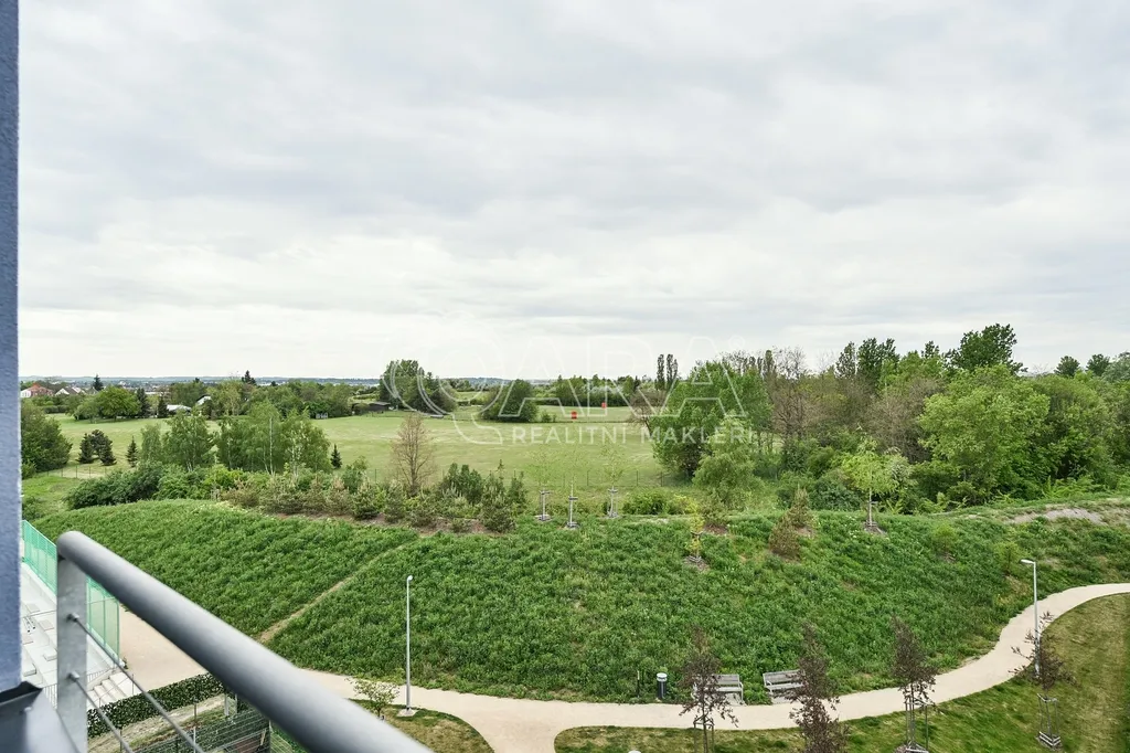 Z bytu je hezký výhled do klidové části Uhříněvsi.