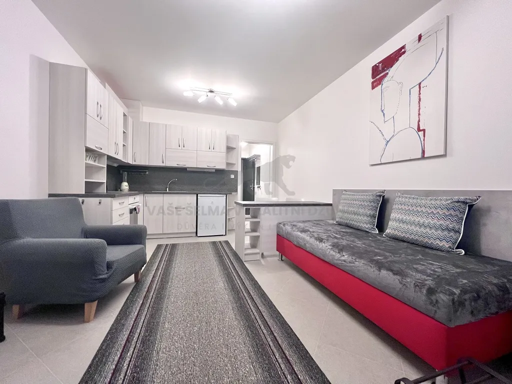 moderní, zcela nový, kompletně zařízený byt 1+kk 25,3 m² s balkónem (4,6 m²) a s garážovým stáním.