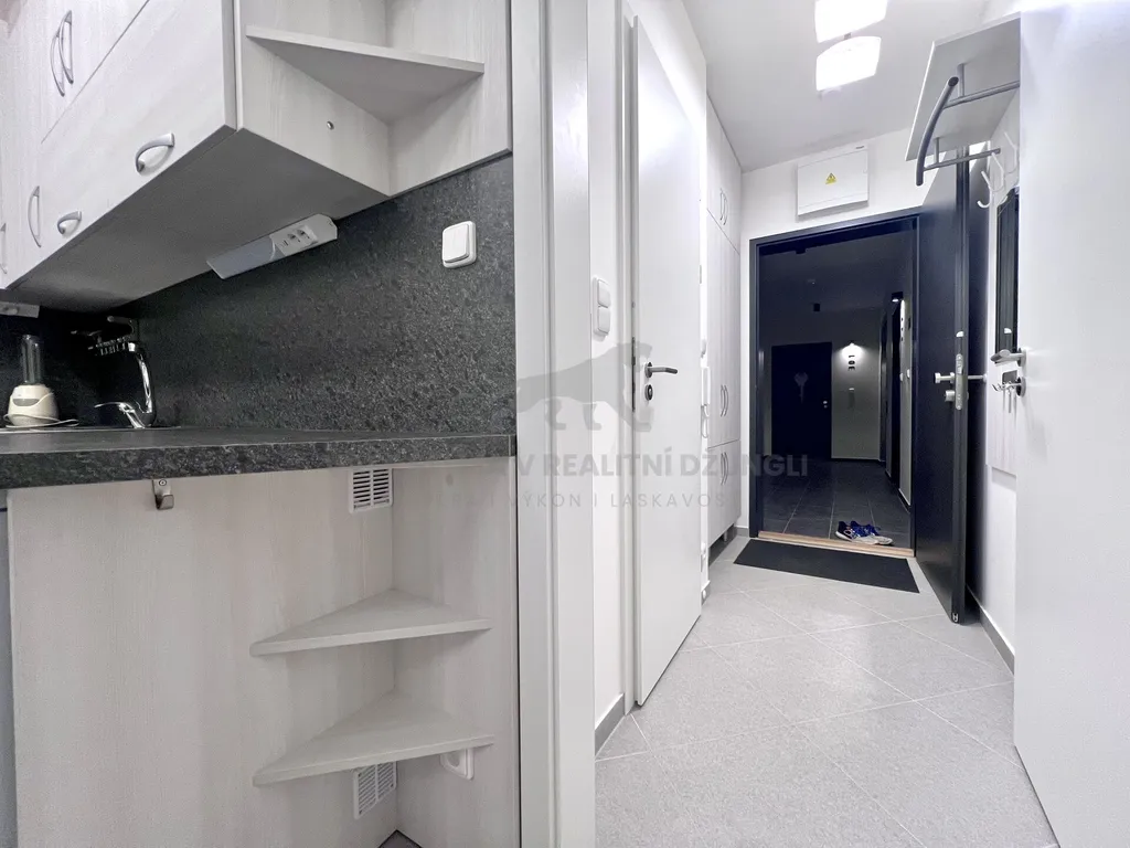 Pronájem zcela nového moderního bytu 1+kk s balkónem a garážovým stáním