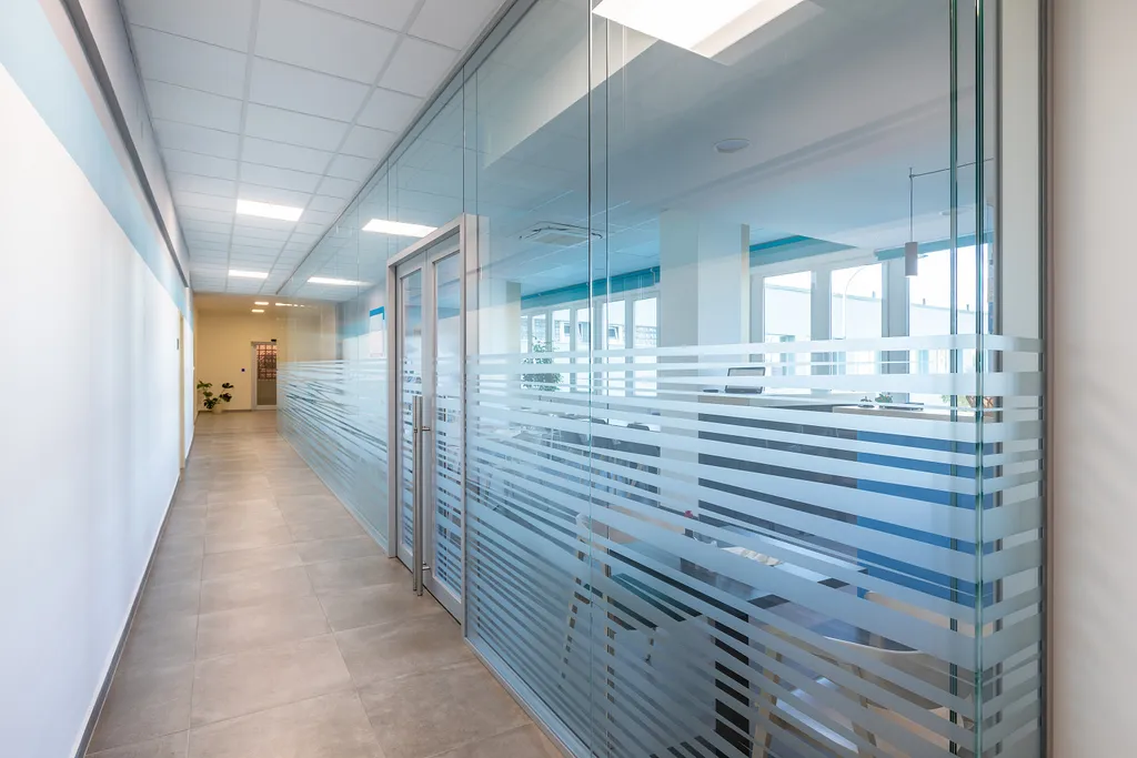 Vybavení kanceláří: klimatizace, zátěžové koberce, žaluzie, centrální topení, strukturovaná kabeláž, PC síť, dostatek tel. linek, připojení k datové síti vysokou rychlostí.