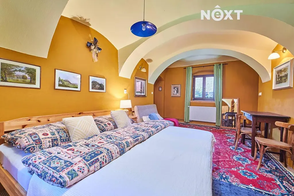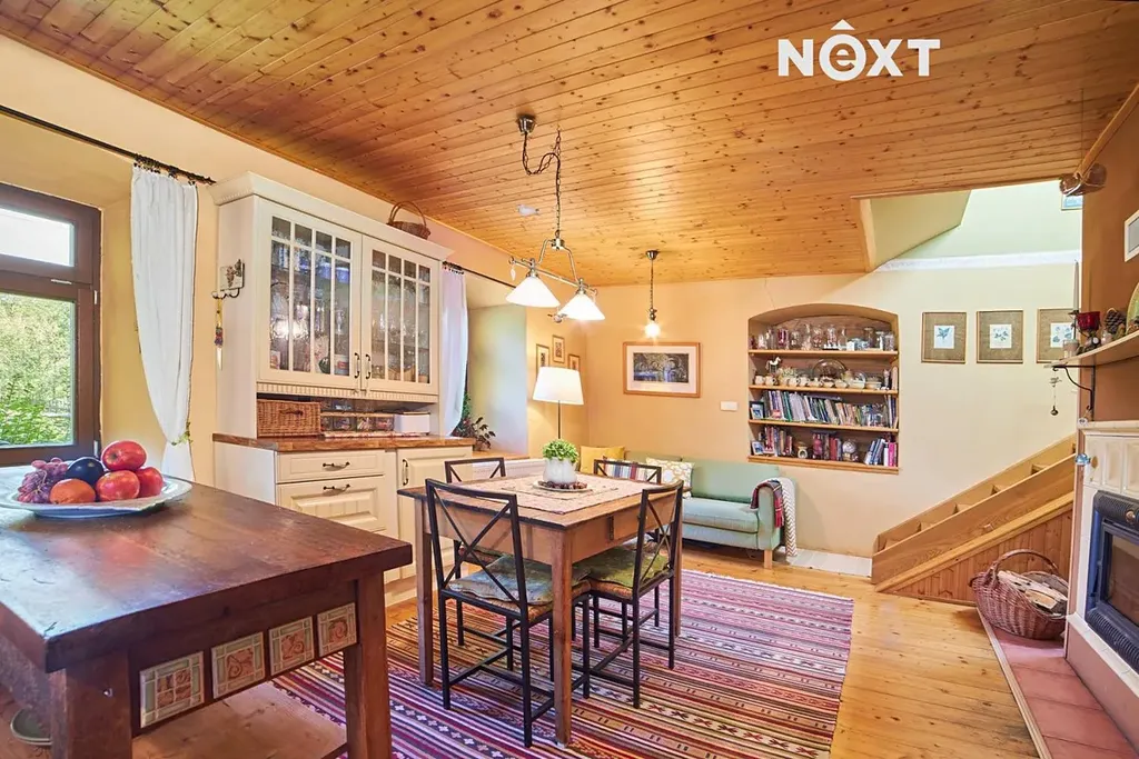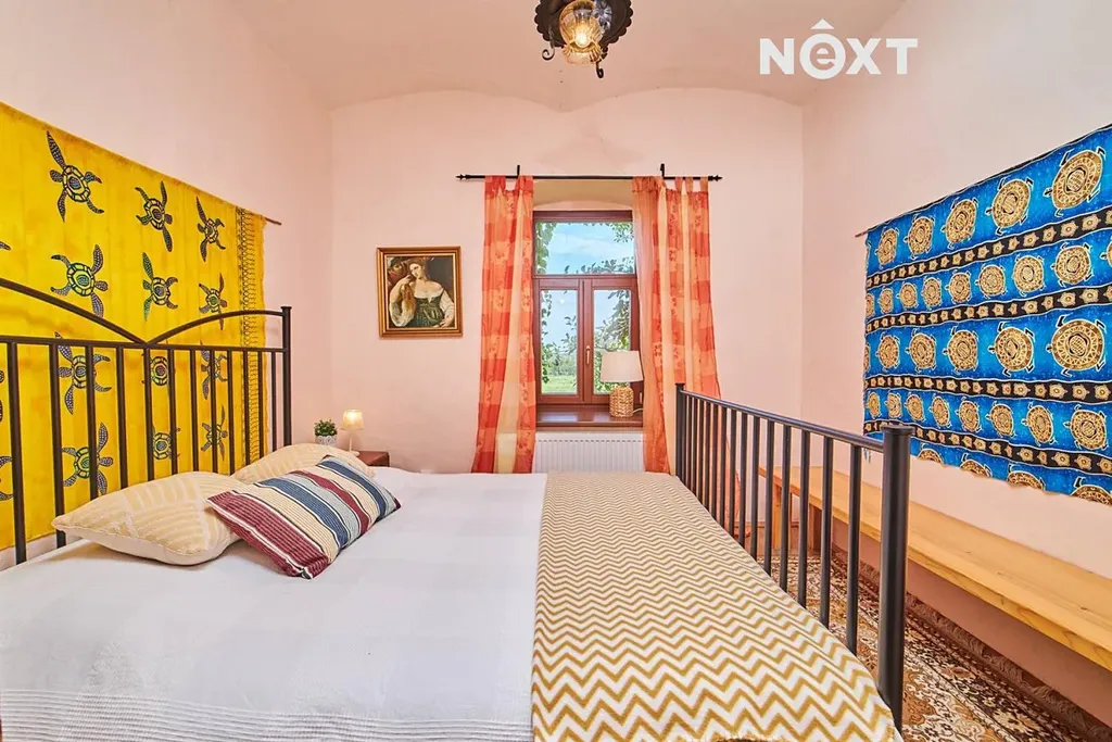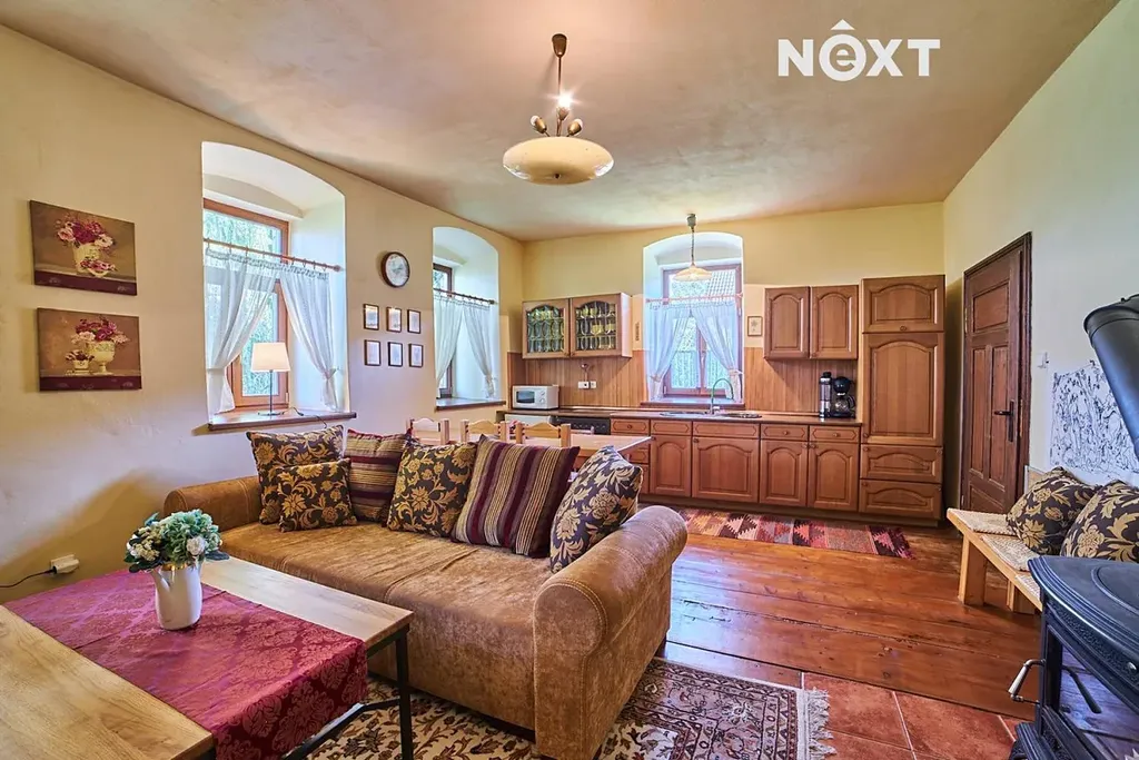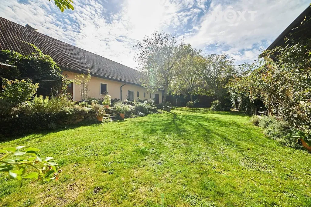 Na pomezí luk, rybníků a starých alejí stojí usedlost, která jako by se vytrhla ze staré pohlednice. V Mníšku u Stříbřece, kousek od Třeboně, se ukrývá oáza klidu, kde rána voní po růžích a večery ztichnou pod vrbami nad jezírkem. Tento tříkřídlý statek s absolutním soukromím, dvěma domy a rozkvetlými zahradami nabízí nejen krásu, ale i prostor pro nový začátek – ať už hledáte domov, útočiště, nebo místo, kde můžete tvořit. Hlavní dům (č.p.13, cca 255 m², 5kk) vás přivítá atmosférou francouzského venkova. V přízemí se nachází vstupní chodba, elegantní koupelna s vanou i sprchou, samostatné WC, technická místnost a především srdce domu – velkorysý obývací prostor s kuchyní, jídelnou a krbem, který je nejen zdrojem tepla, ale i klidného světla. Nechybí ani samostatná garsoniéra s vlastním vchodem a koupelnou – ideální pro hosty nebo samostatné bydlení. V patře najdete ložnici, šatnu, toaletu a prostorný pokoj s knihovnou a výhledem do korun stromů, který lze rozdělit. Nad tímto podkrovím se rozprostírá půda s potenciálem další výstavby. Z obývacího pokoje se vychází na jihozápadní terasu u jezírka, kde můžete v tichu naslouchat přírodě. Vytápění a ohřev vody zajišťuje tepelné čerpadlo s možností přepnutí na kotel na dřevo. Dům je napojen na obecní vodovod a kanalizaci, k dispozici jsou také dvě studny – na dvoře a v zahradě. Dešťová voda je svedena do malého přírodního rybníčku se studánkou, přímo před domem. Měsíční náklady na provoz činí přibližně 5 500 Kč. Druhý dům (č.p.50, cca 85 m², 2kk) se nachází v zadní části usedlosti a přístup k němu vede kolem rybníčku a vrby. Působí jako tiché zázemí pro hosty či rekreační pronájem. Nabízí vstupní předsíň, koupelnu, samostatné WC, ložnici a obývací pokoj s kuchyňkou a krbovými kamny. Zdejší posezení s výhledem na pastviny a koně navodí pocit, že jste daleko od všeho. Zahrady jsou živým obrazem – na jaře a v létě tu rozkvétají růže, hortenzie, levandule a další květiny. V zadní části najdete ovocné stromy, skleník, pastvinu, ohniště i výběh pro ovce. Hospodářská křídla nabízejí ustájení pro koně, dílny a sklady. Pozemek má 13 997 m², příjezd je po vlastní cestě a smožností parkování pro 4 vozy. Tento statek je výjimečný nejen svým prostorem a stylem, ale hlavně duší. A možná bude mít i tu vaši. Pro komunikaci uvádějte evidenční číslo zakázky N116472.