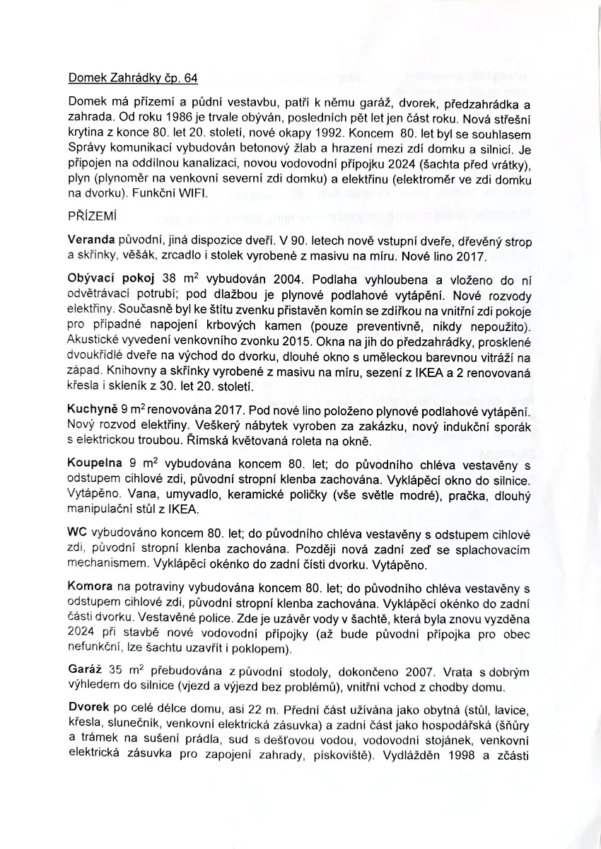 Pěkný zmodernizovaný rodinný dům v malé obci, která leží na zemské hranici mezi Čechami a Moravou, v současnosti na pomezí tří okresů a dvou krajů. Obytná část obsahuje v přízemí vstupní verandu, chodbu, velkou obytnou místnost 38 m2, kuchyni, koupelnu s prádelnou, WC, komoru a průchod do navazující stodoly, využitelné jako garáž a sklad.