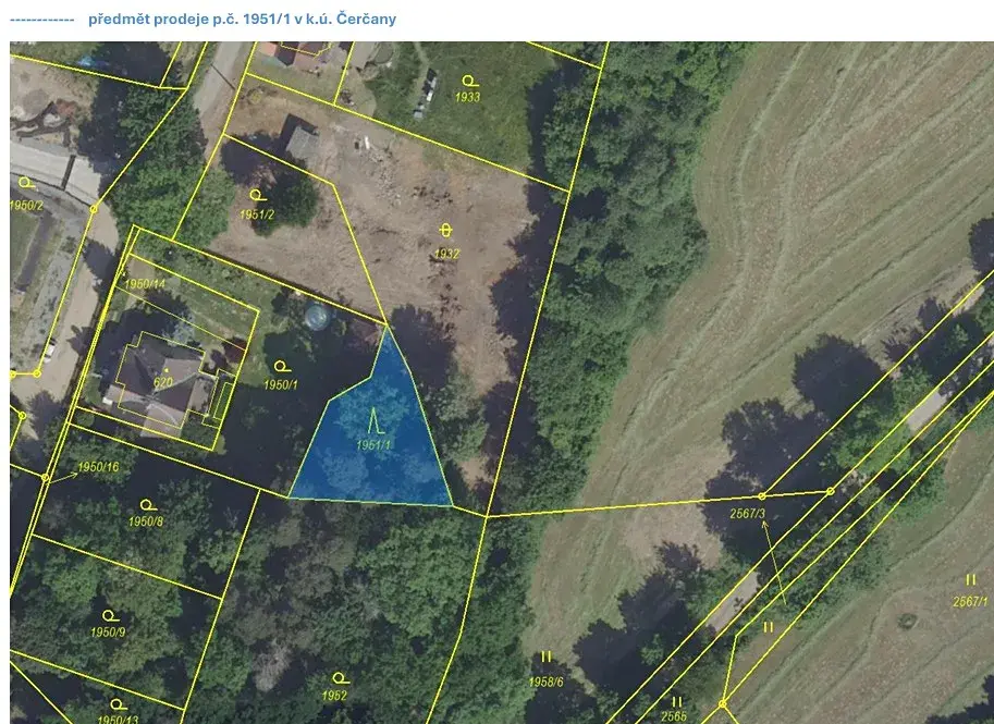 pozemek p.č. 1951/1 v k.ú. Čerčany je zapsán v katastru nemovitostí na listu vlastnictví č. 170, vedeném Katastrálním úřadem pro Středočeský kraj, Katastrálním pracovištěm Benešov pro katastrální území Čerčany, obec Čerčany (dále též „předmětná nemovitá věc“).