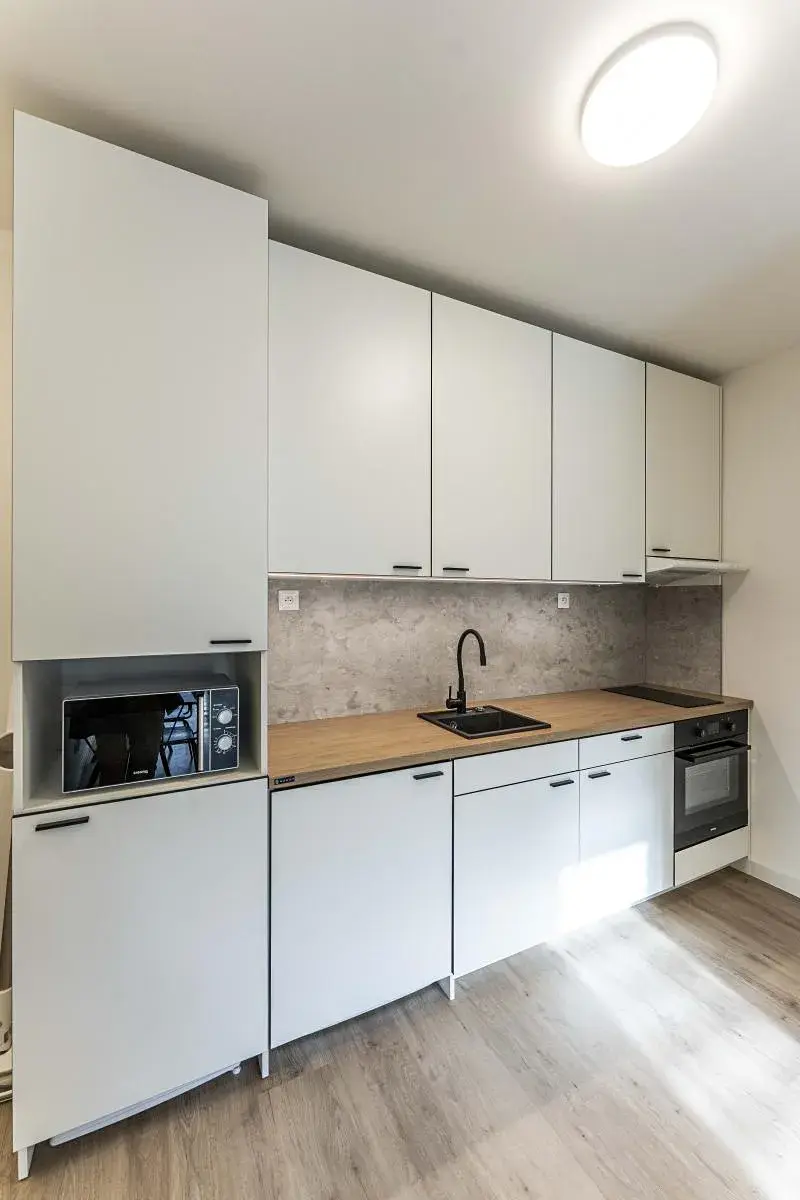 Nabízíme k podnájmu (možné i krátkodobému na 3-6 měsíců) nový, plně zařízený byt 1+kk o velikosti 30 m2, který se nachází ve 3. patře (4.NP) moderního rezidenčního projektu NBP Living v Praze 4 Nusle.