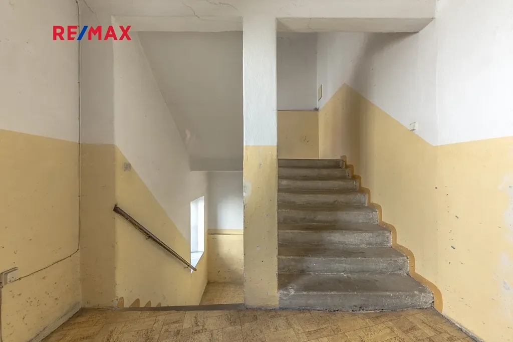 Přízemí objektu tvoří komerční prostory s rozlohou cca 80 m² (prodejní plocha + zázemí) s vlastním vstupem z přímo z náměstí 5. května – ideální pro obchod, kavárnu, kancelář či jiné podnikání.